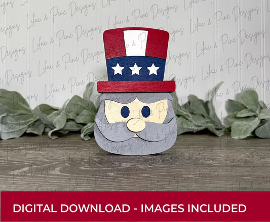 Laser Ready Uncle Sam Shelf Sitter SVG - Chunky Patriotic shelf sitter for Glowforge - 4th of July Pattern for Paint Kit - Americana decor
