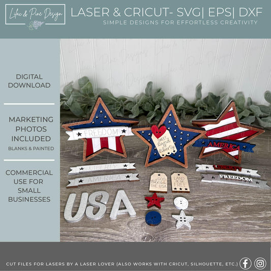 Mix & Match Chunky Star Shelf Sitter Bundle SVG - 4th of July Laser Ready Cut Files - Patriotic DIY Decor Bundle - Independence Day project