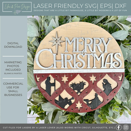 Elegant Christmas Nativity door hanger SVG - Religious welcome sign - baby Jesus in manger - Cricut SVG - Merry Christmas laser cut file