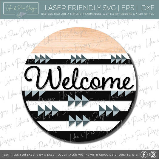 Welcome home Barn quilt door hanger, Welcome SVG, Boho Home door round, barn quilt sign, boho SVG, farmhouse svg, Glowforge file, laser svg