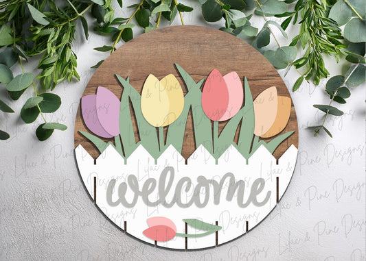 tulip door hanger SVG, spring floral welcome sign SVG, spring flower round sign, Glowforge Svg, laser cut file, Cricut SVG, digital download