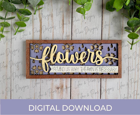 Flowers and rain SVG, Spring floral decor SVG, Spring flower sign, digital download, floral shelf sitter SVG, Glowforge Svg, laser cut file