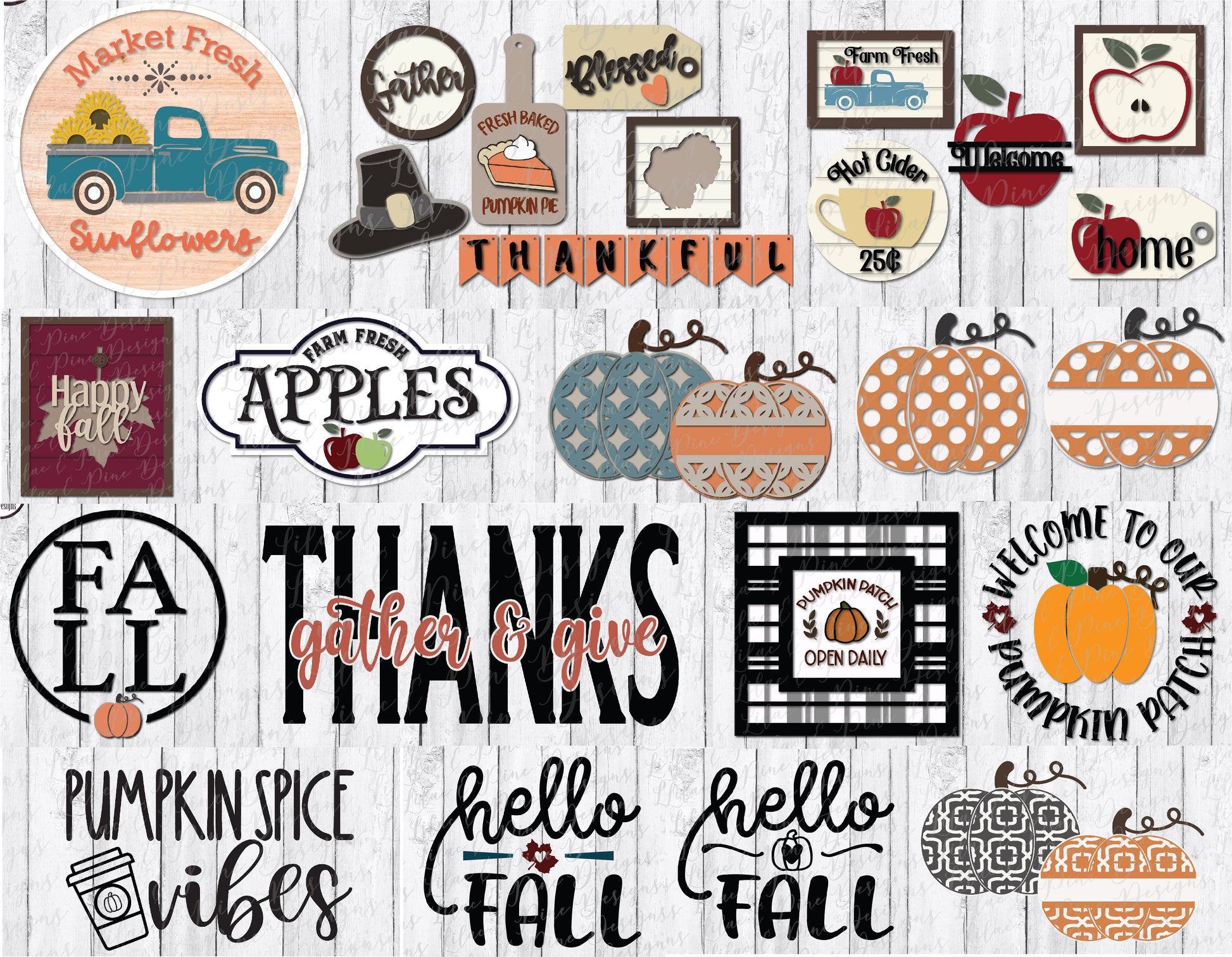 Fall is such a beautiful season with rich colors and even richer flavors. This bundle contains a mix of designs that encapsulate both. From sunflowers, to apples, to pumpkins and turkeys, this file set contains a bit of everything. There are hanging door signs, tiered tray files and even a tiered tray!