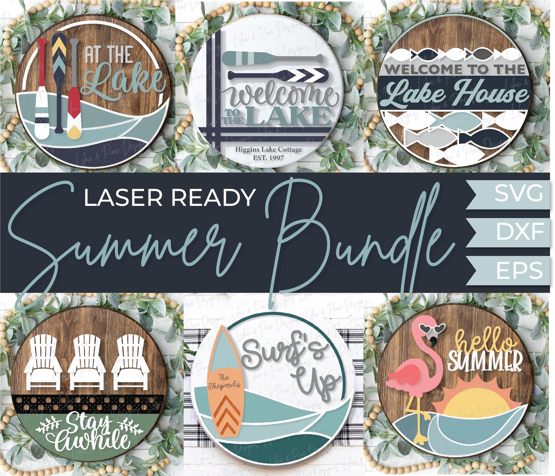 Summer Bundle - Volume 1, 48 FILES - laser cut files, Glowforge laser files, door hanger SVG