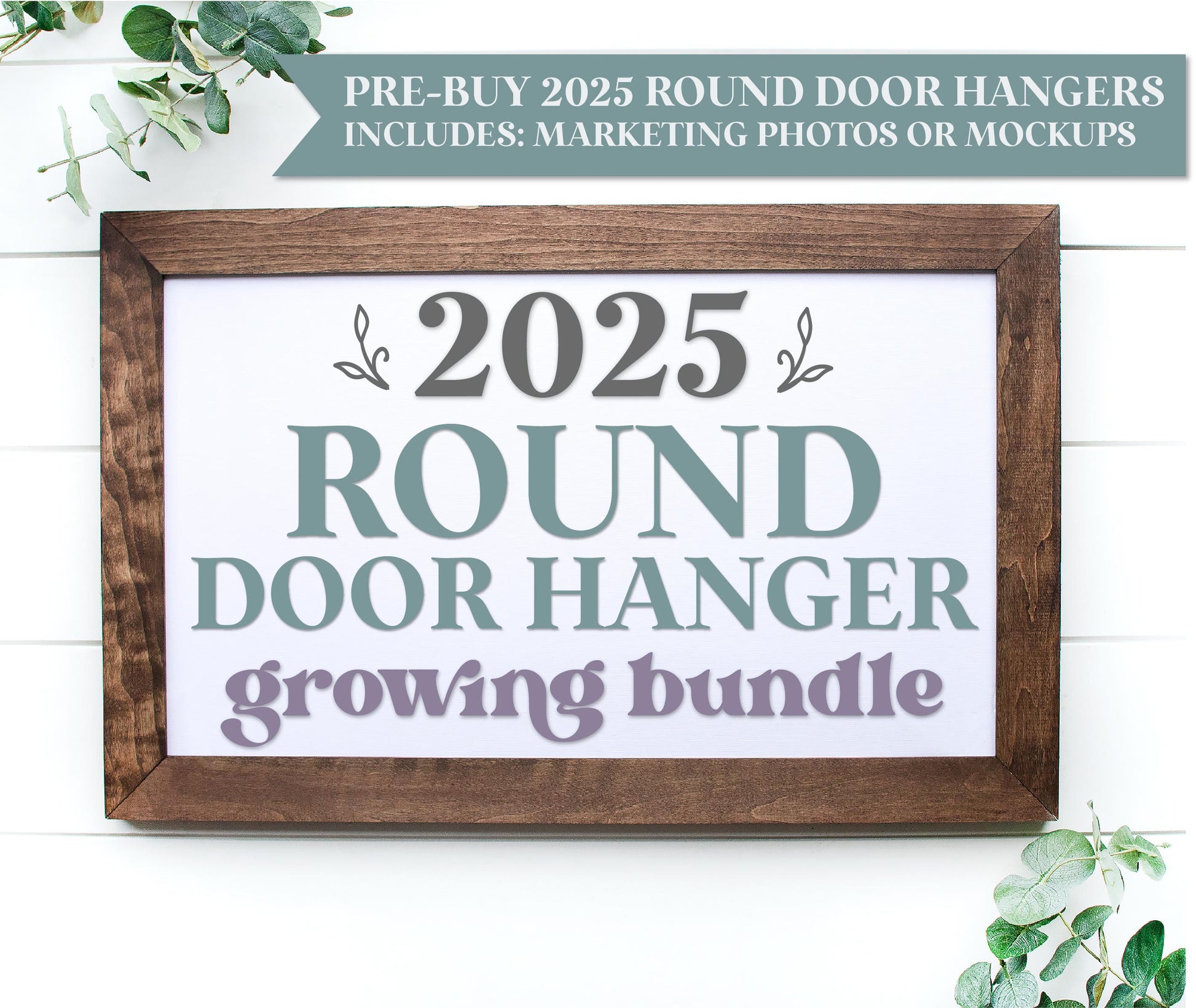 The 2025 Round Door Hanger Growing Bundle includes all of the seasonal, holiday and everyday ROUND DOOR HANGERS that will be released publicly to Etsy in 2025. That means all the round door hangers released from Black Friday 2024 until Thanksgiving Day 2025.