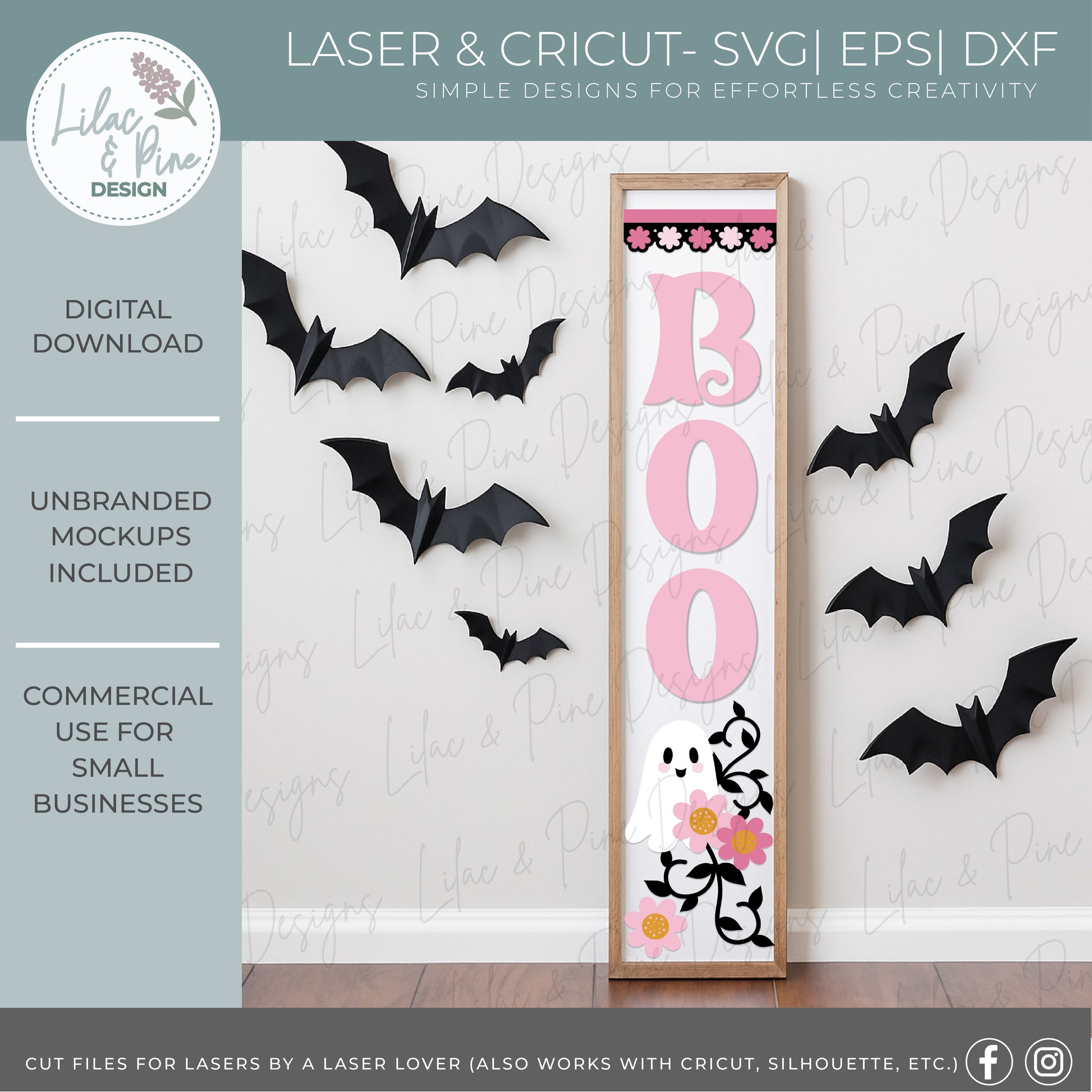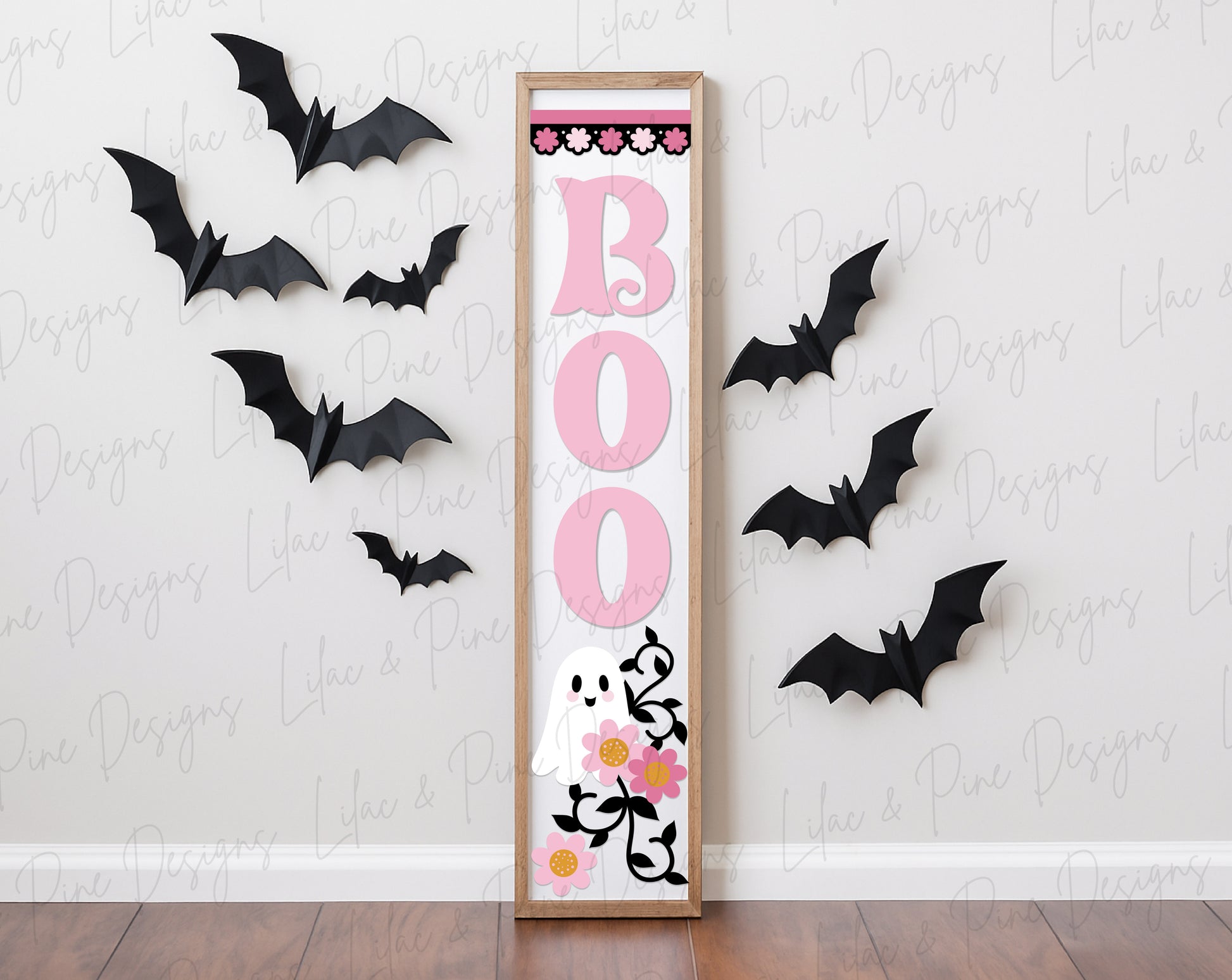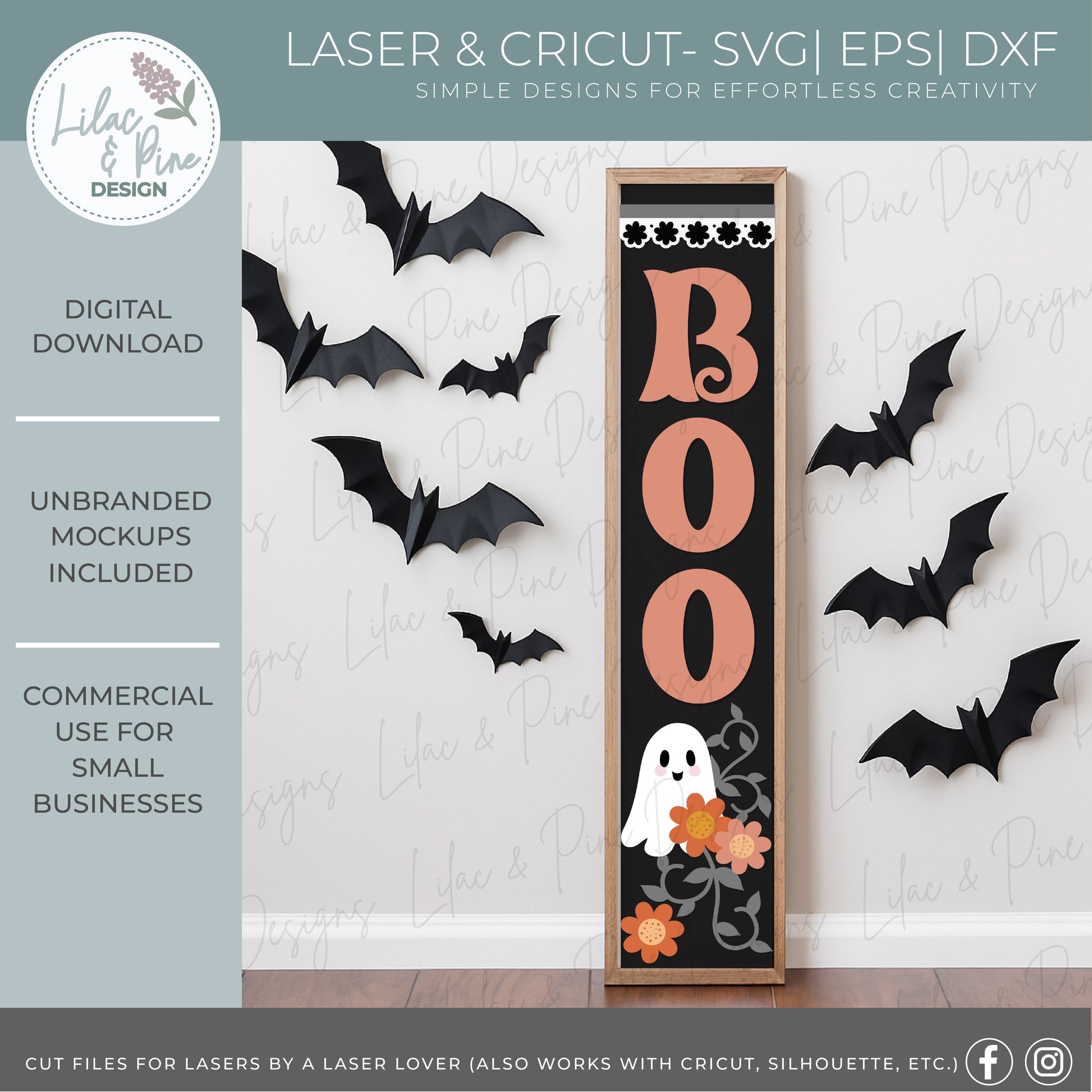 Boo Halloween Porch Leaner SVG - Cute Floral Ghost vertical sign - Cricut SVG - laser cut file: Glowforge, xTool, Lightburn
