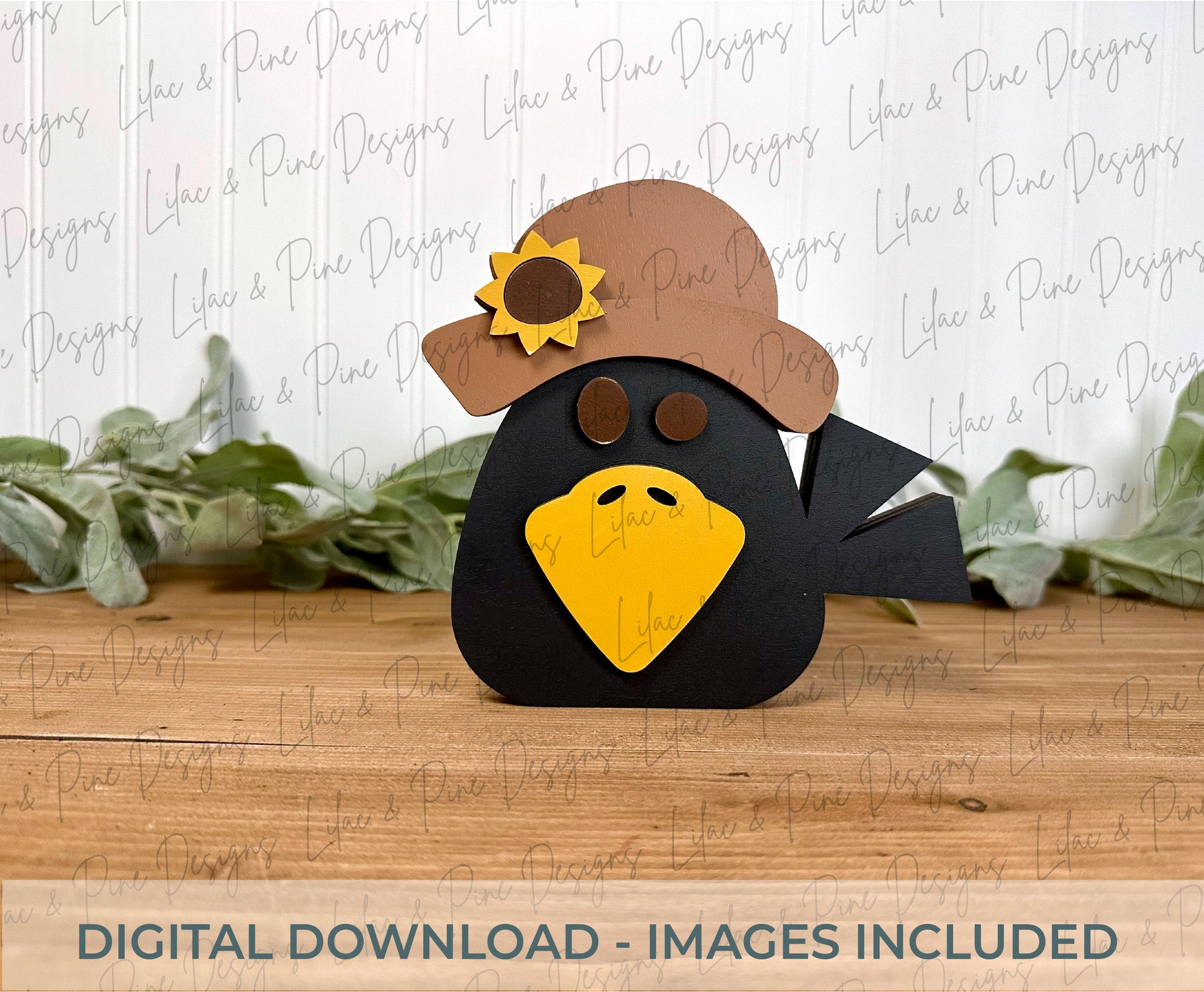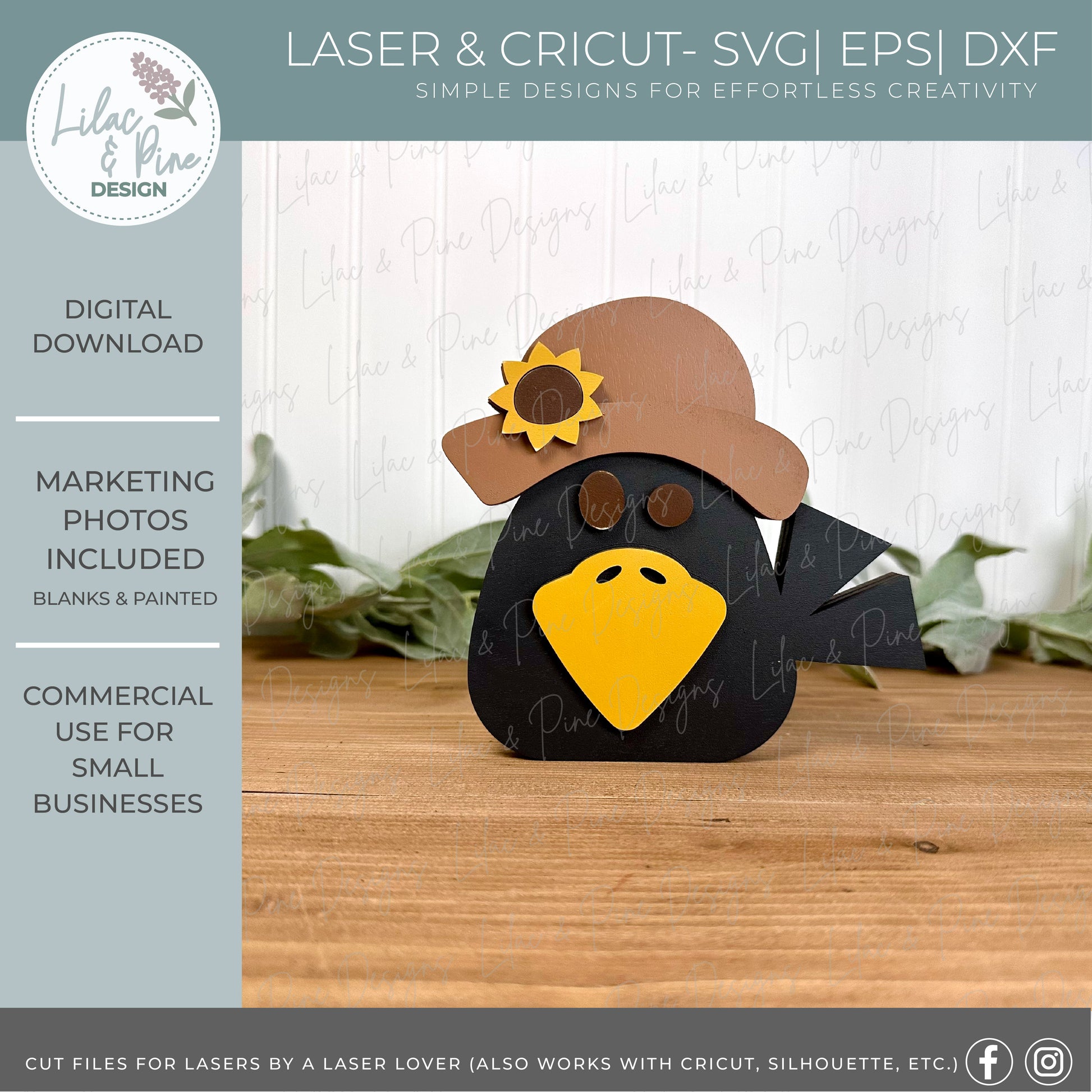 Bring a little rustic charm to your fall projects with this adorable Chunky Crow with Sunflower Hat laser cut file! Designed in the signature Lilac & Pine style, this piece is easy to cut, simple to paint, and perfect for markets, craft fairs, or seasonal home décor.