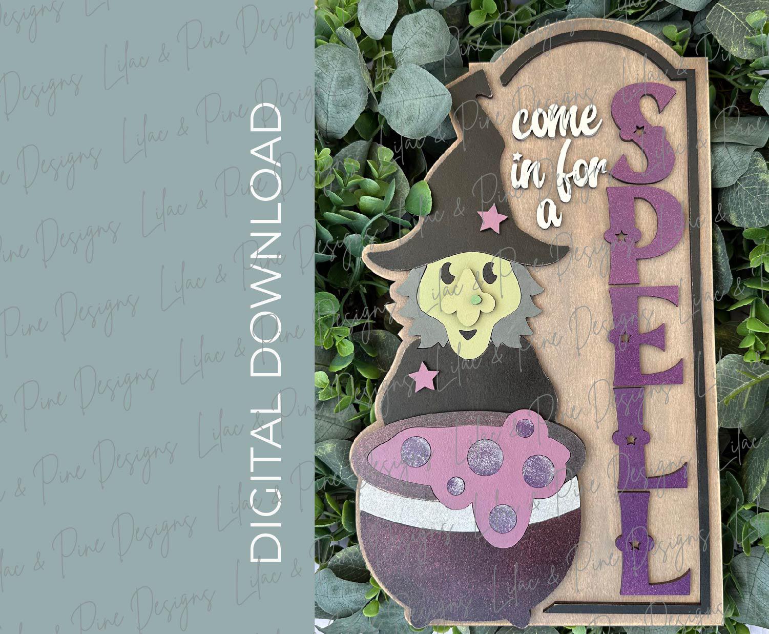 Come in for a Spell sign, witch welcome sign SVG, Halloween door hanger, Spooky season decor, cauldron svg, Glowforge SVG, laser cut file