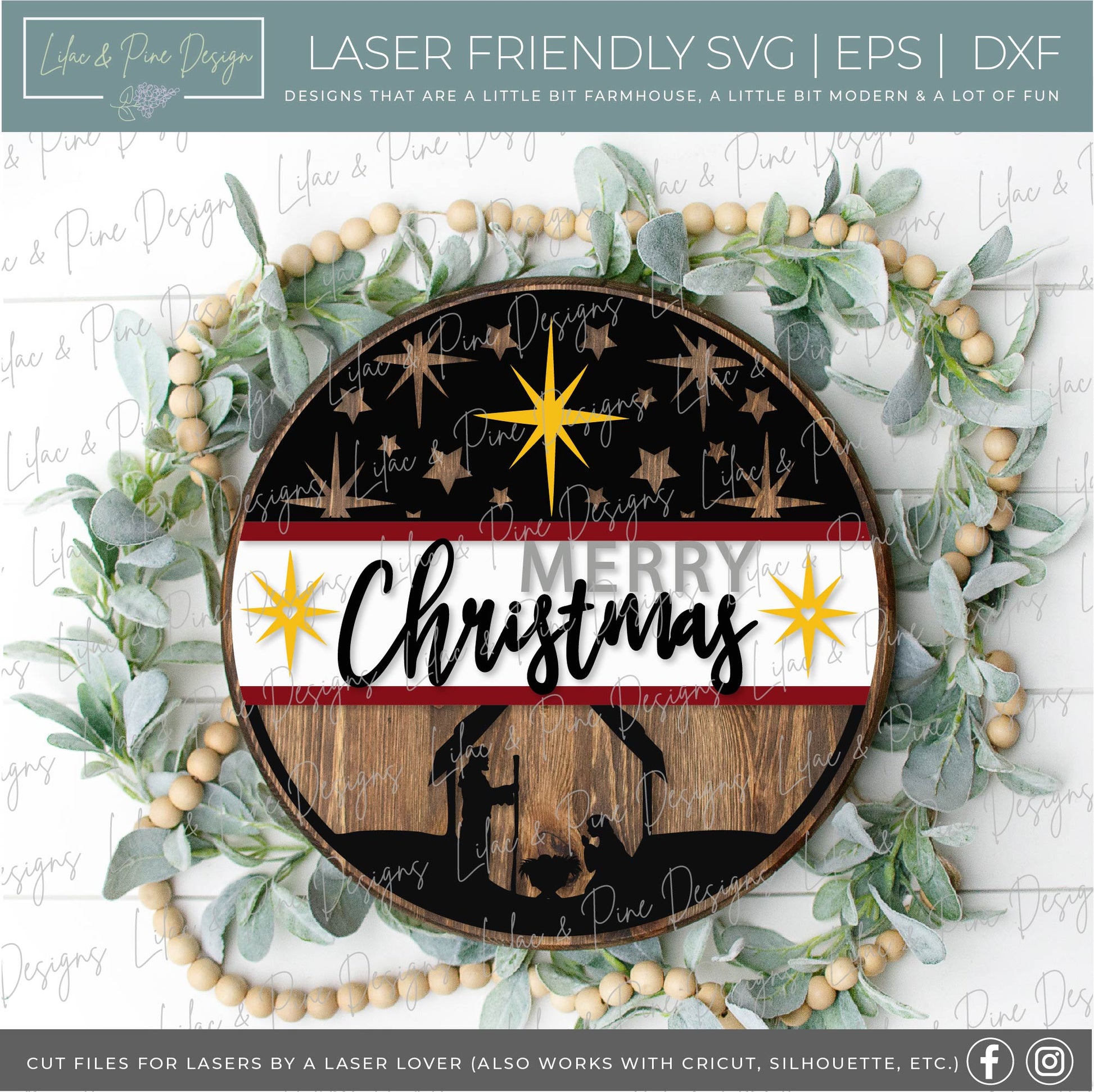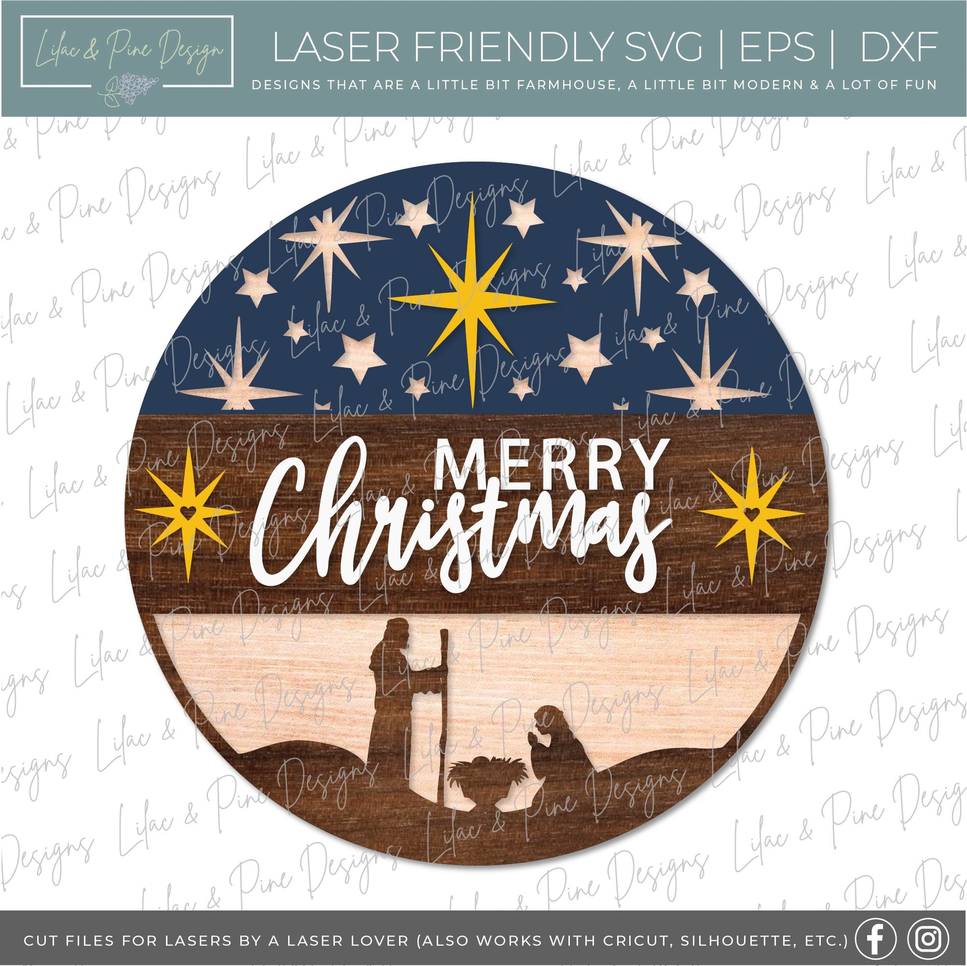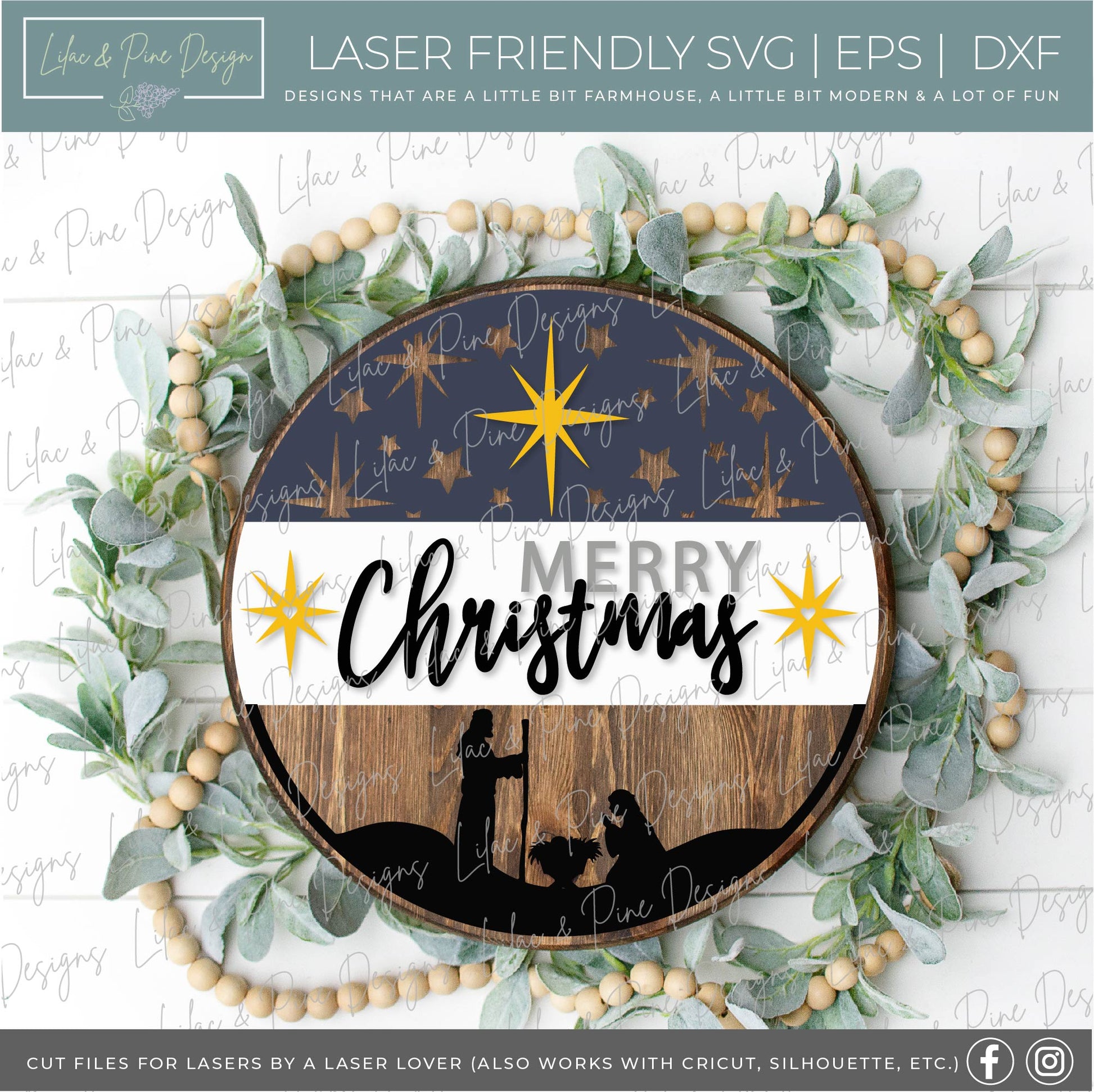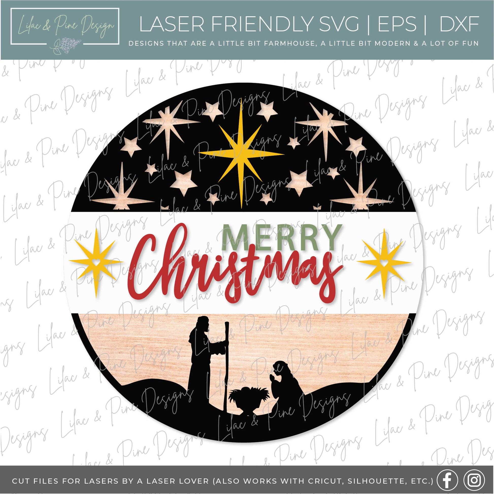 Nativity scene sign, Merry Christmas SVG, Christmas sign SVG, Nativity welcome sign, Manger scene svg, laser cut file, Glowforge SVG