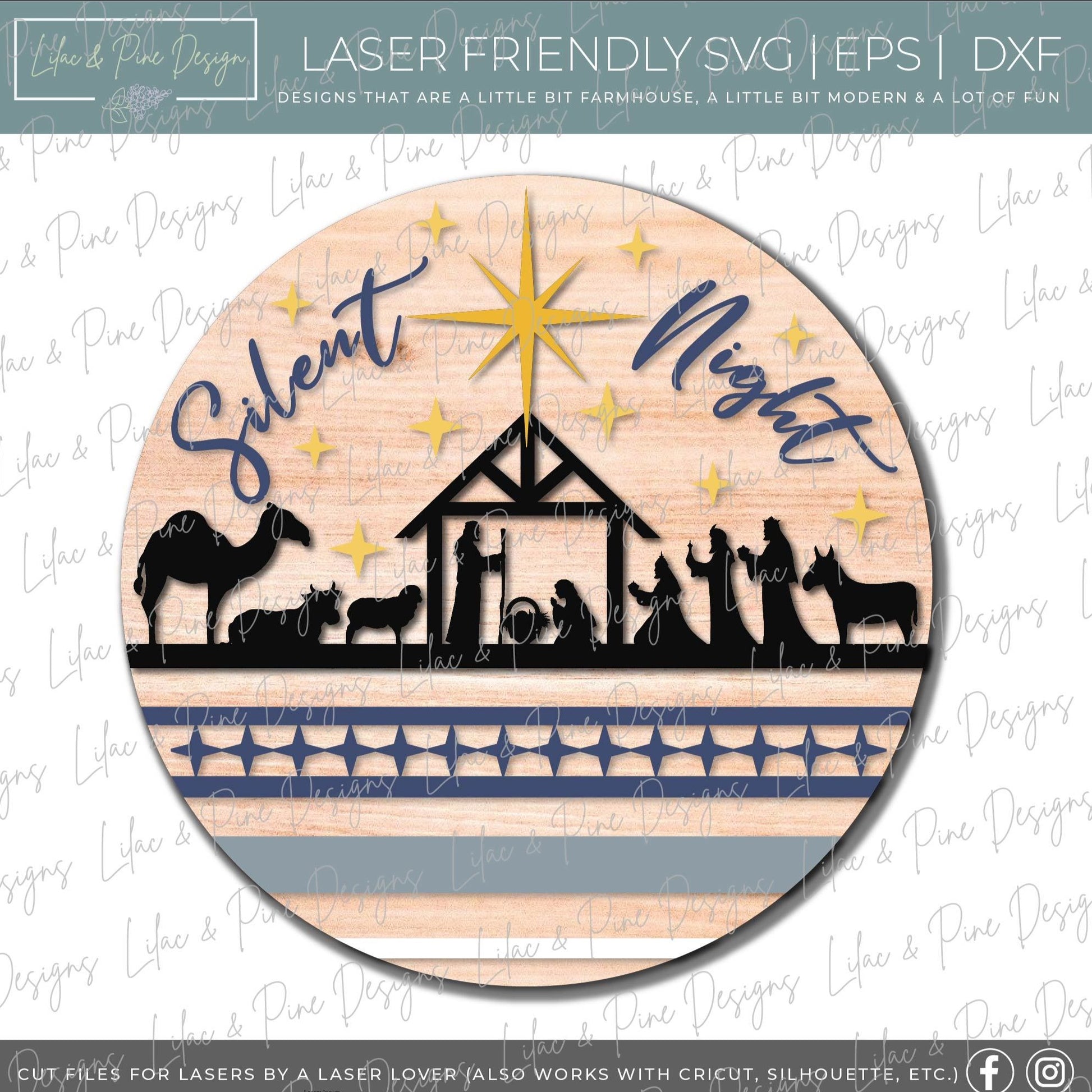 Silent Night Nativity door hanger sign, Holy Night SVG, Nativity welcome SVG, manger SVG, Christmas laser file laser cut file, Glowforge file