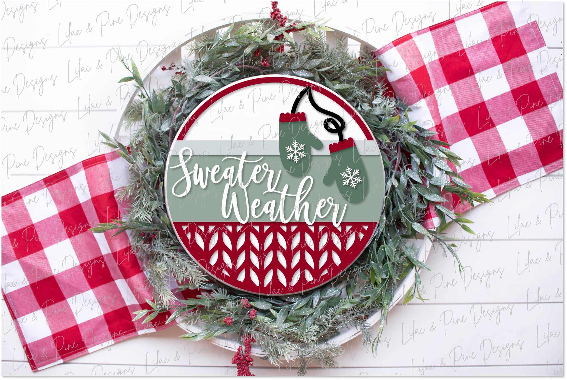 Sweater Weather Mitten door hanger SVG, Winter Welcome sign SVG, winter door round SVG, winter decor, snow SVG, mitten SVG, laser cut file, Glowforge SVG