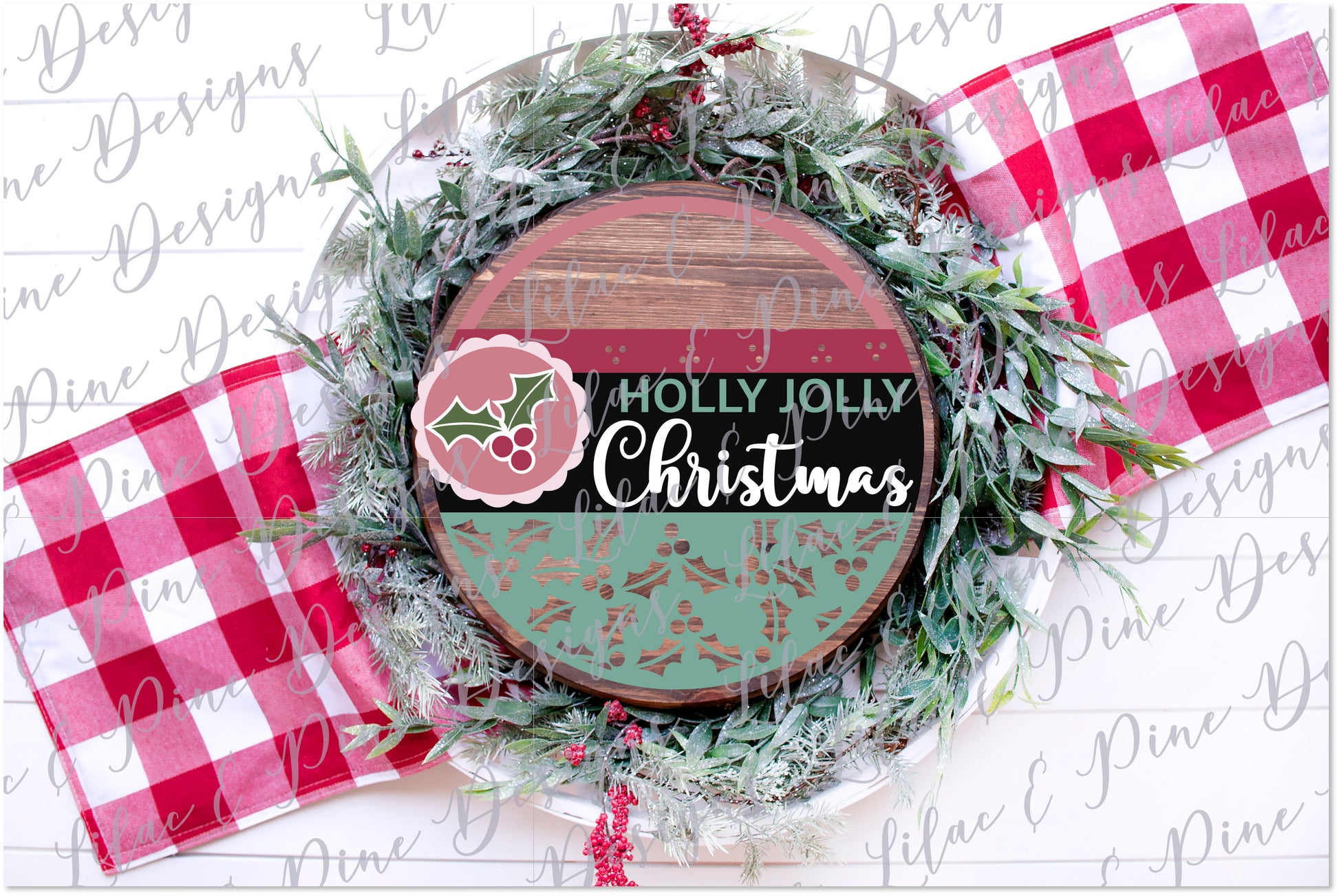 The sign features the base round, holly patterned bottom, a simple stripe, and a scalloped circle with holly and berries with two text options - Holly Jolly Christmas or Merry Christmas. This SVG cut file can be adorned with a bow and greenery to welcome visitors to your home or left without for a more minimalistic look - hang it on a door to greet guests, hang it on a wall, or set it on a mantle or shelf.