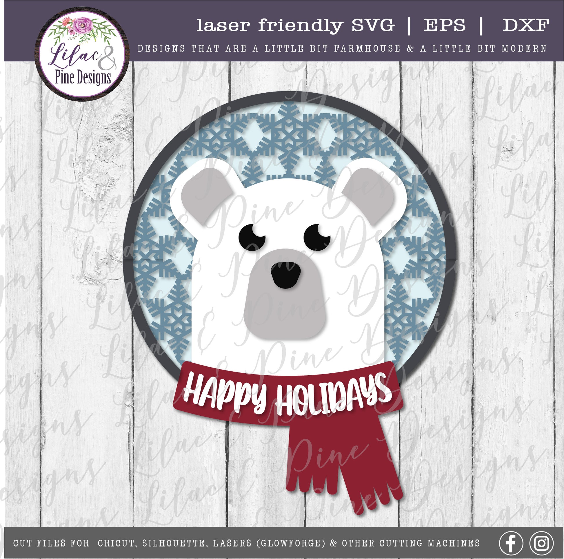 Polar Bear Happy Holidays sign SVG, Happy Holidays SVG, polar bear SVG, winter sign SVG, snowflake pattern SVG, laser cut file, Glowforge SVG