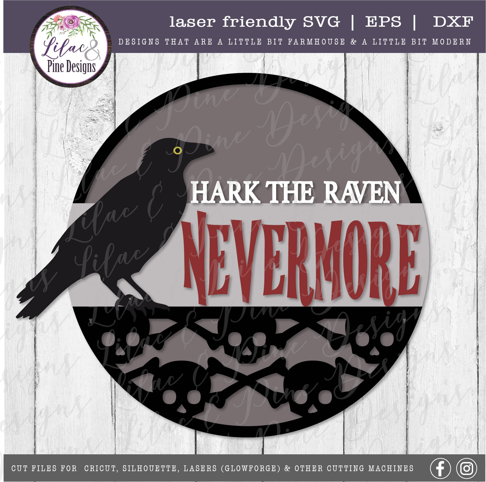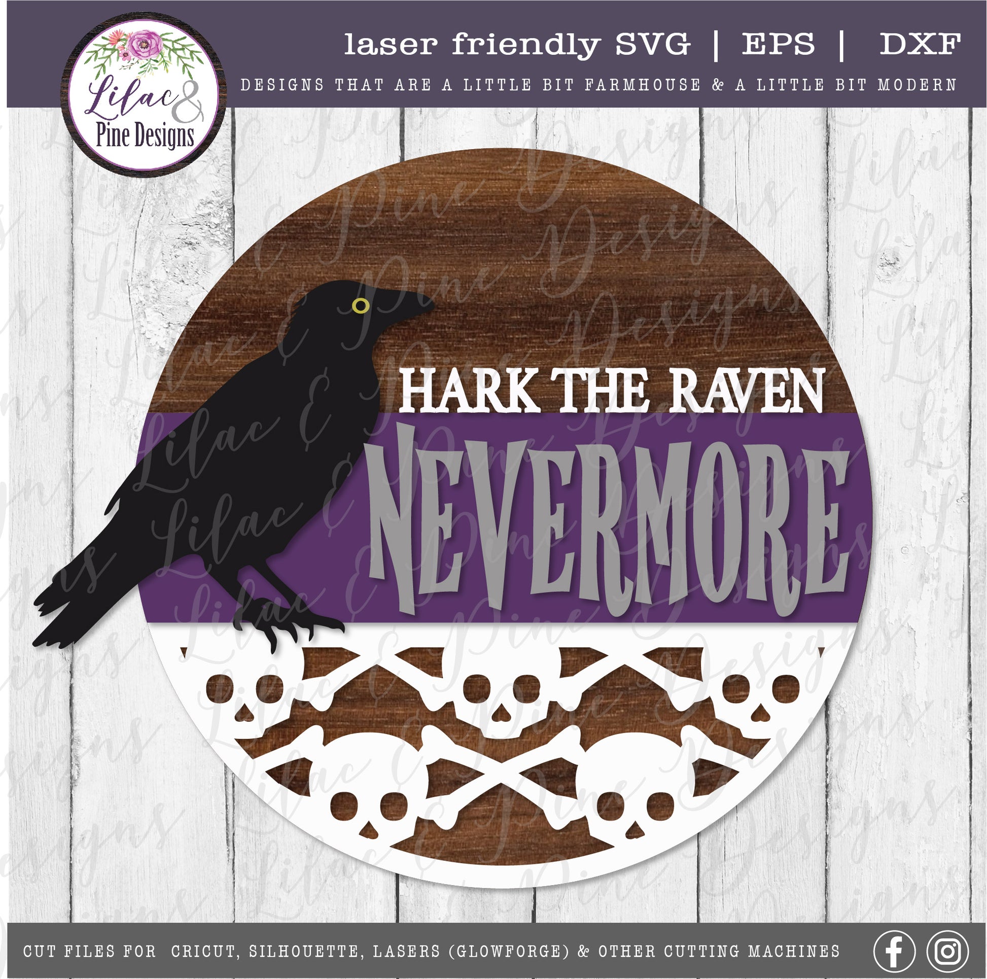 Nevermore Raven Sign SVG, Halloween Welcome SVG, Spooky SVG, Raven SVG, Skull pattern SVG, Poe SVG, Door Round, Halloween SVG, Halloween decor, laser cut file, Glowforge SVG
