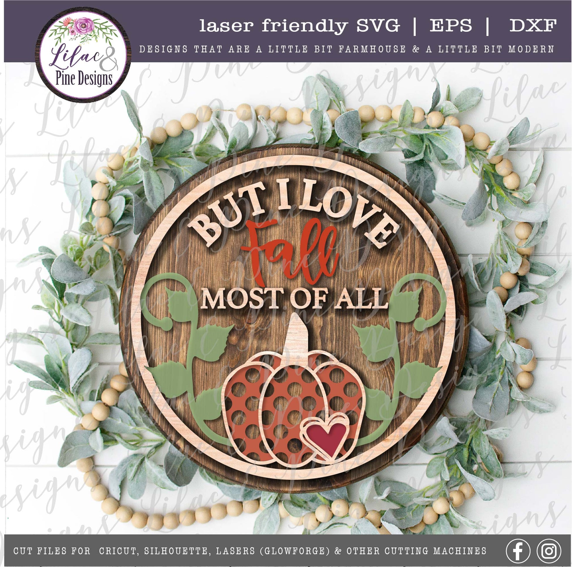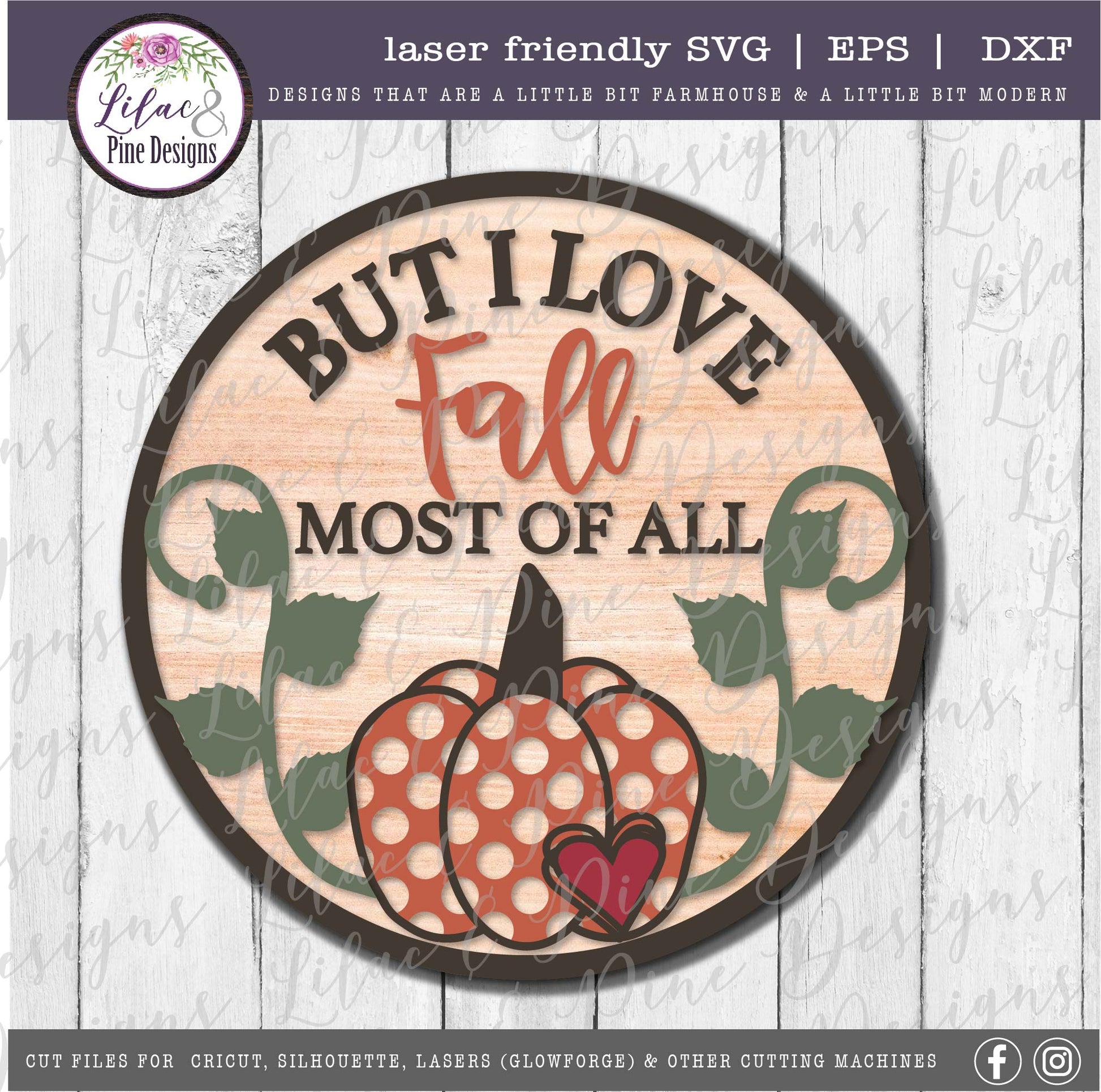 I Love Fall Most of All sign SVG, Polka dot pumpkin SVG, Fall SVG, Autumn SVG, Fall porch decor, laser cut file, Glowforge SVG