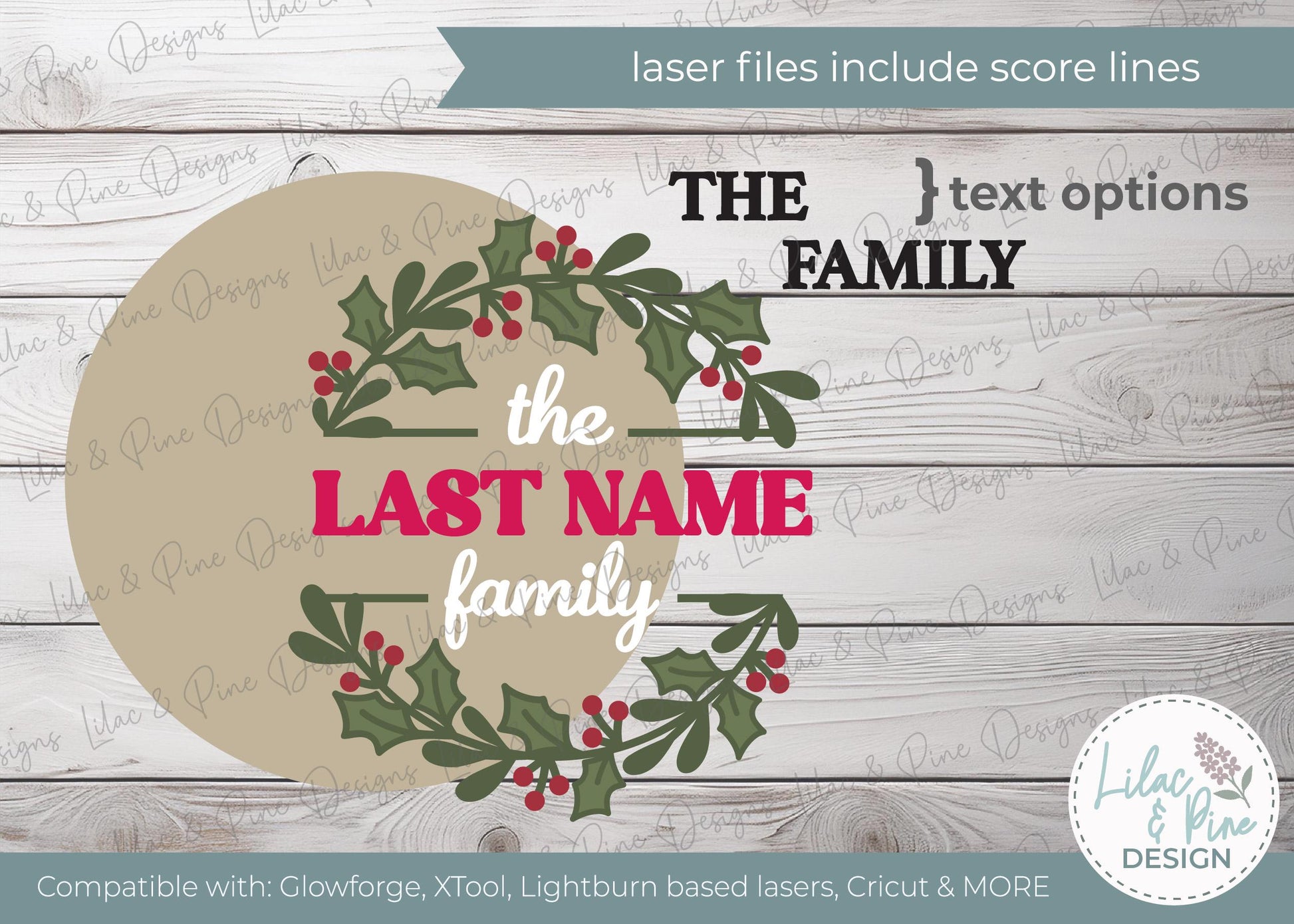 The file includes a blank spot for your chosen text — simply swap in your customer’s last name and any prefix or suffix (like “The,” “Est.,” or “2025”) to make it your own.