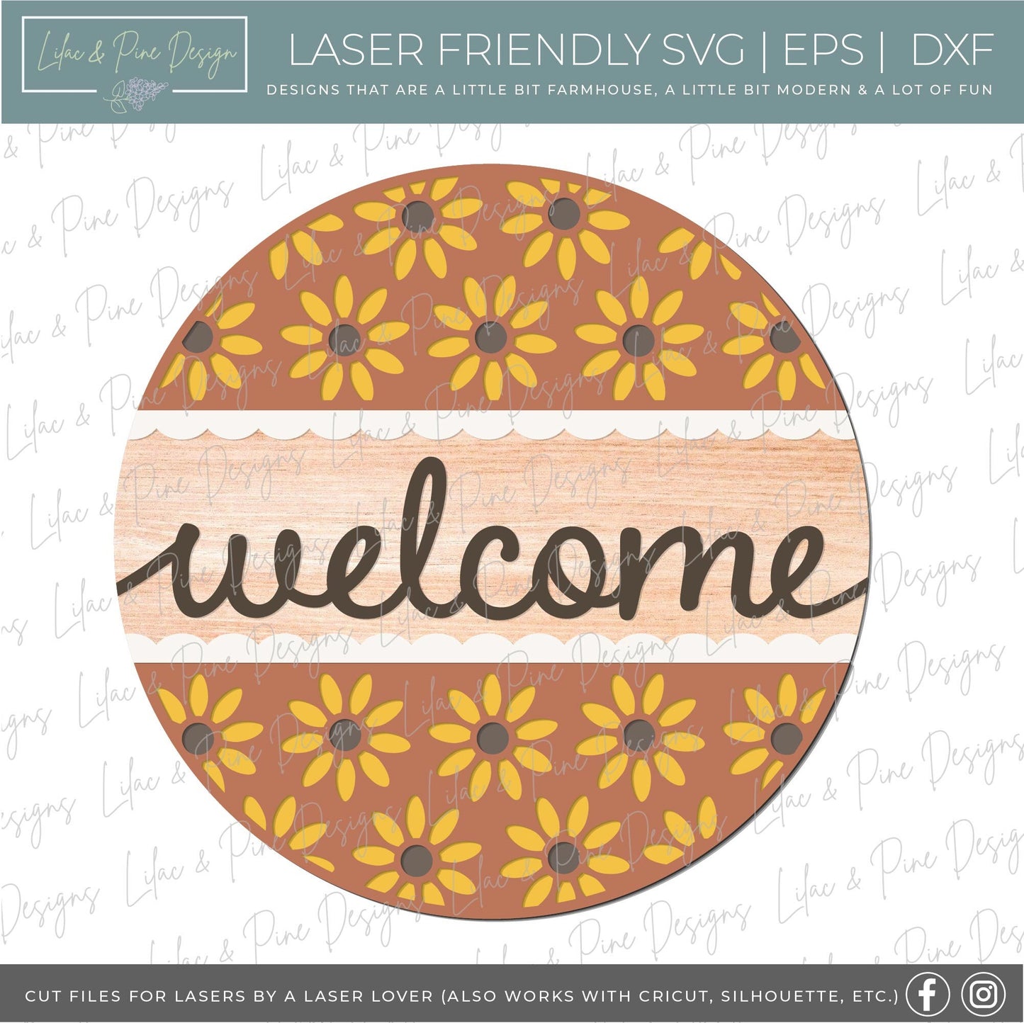 Daisy door hanger SVG, black eyed Susan sign, summer hello SVG, floral porch decor, flower welcome sign, Glowforge SVG, laser cut file