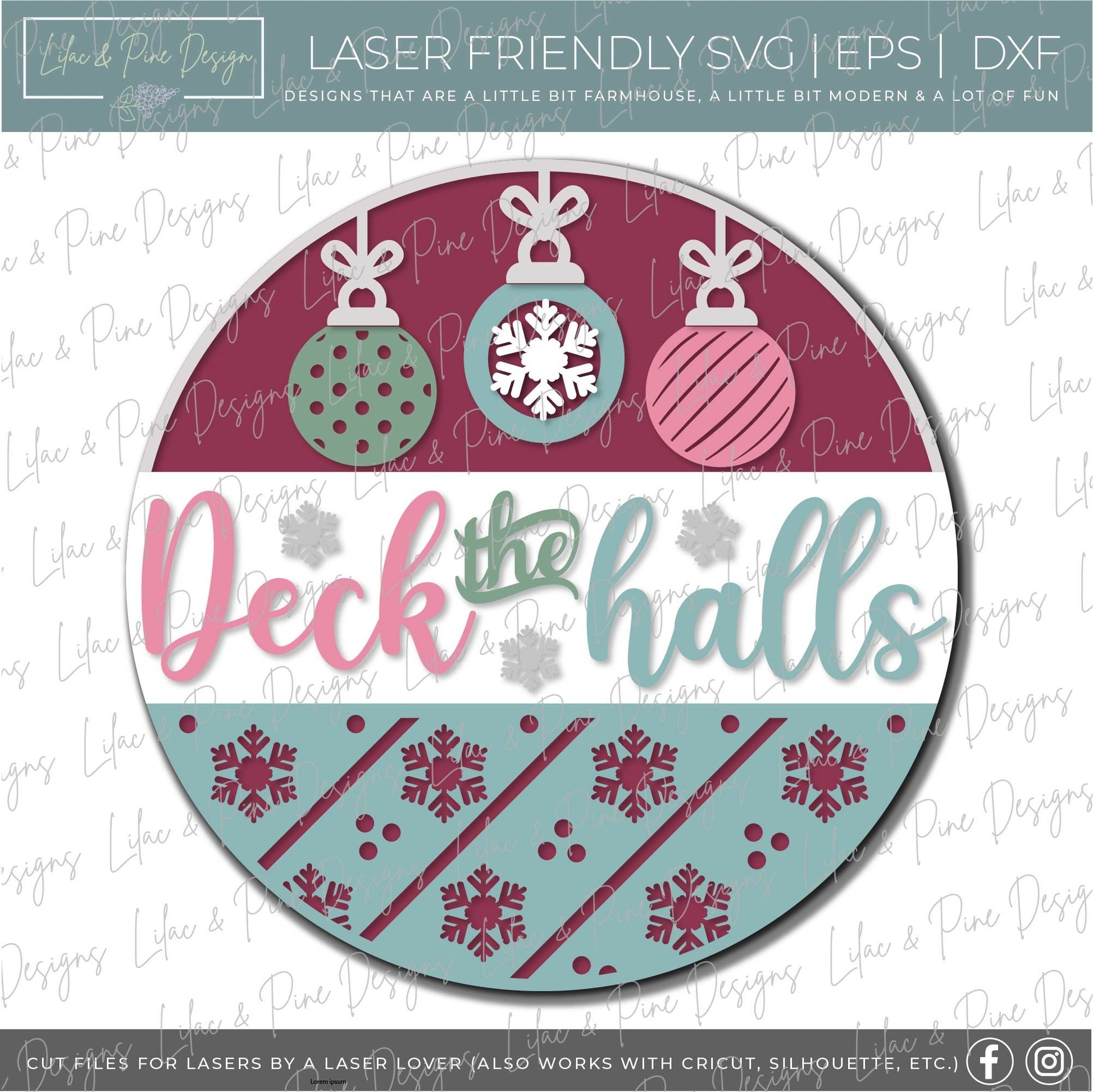 Deck the Halls Door Hanger, Christmas sign door hanger, vintage ornament SVG file, Christmas decor, snowflake svg, laser SVG, Glowforge file