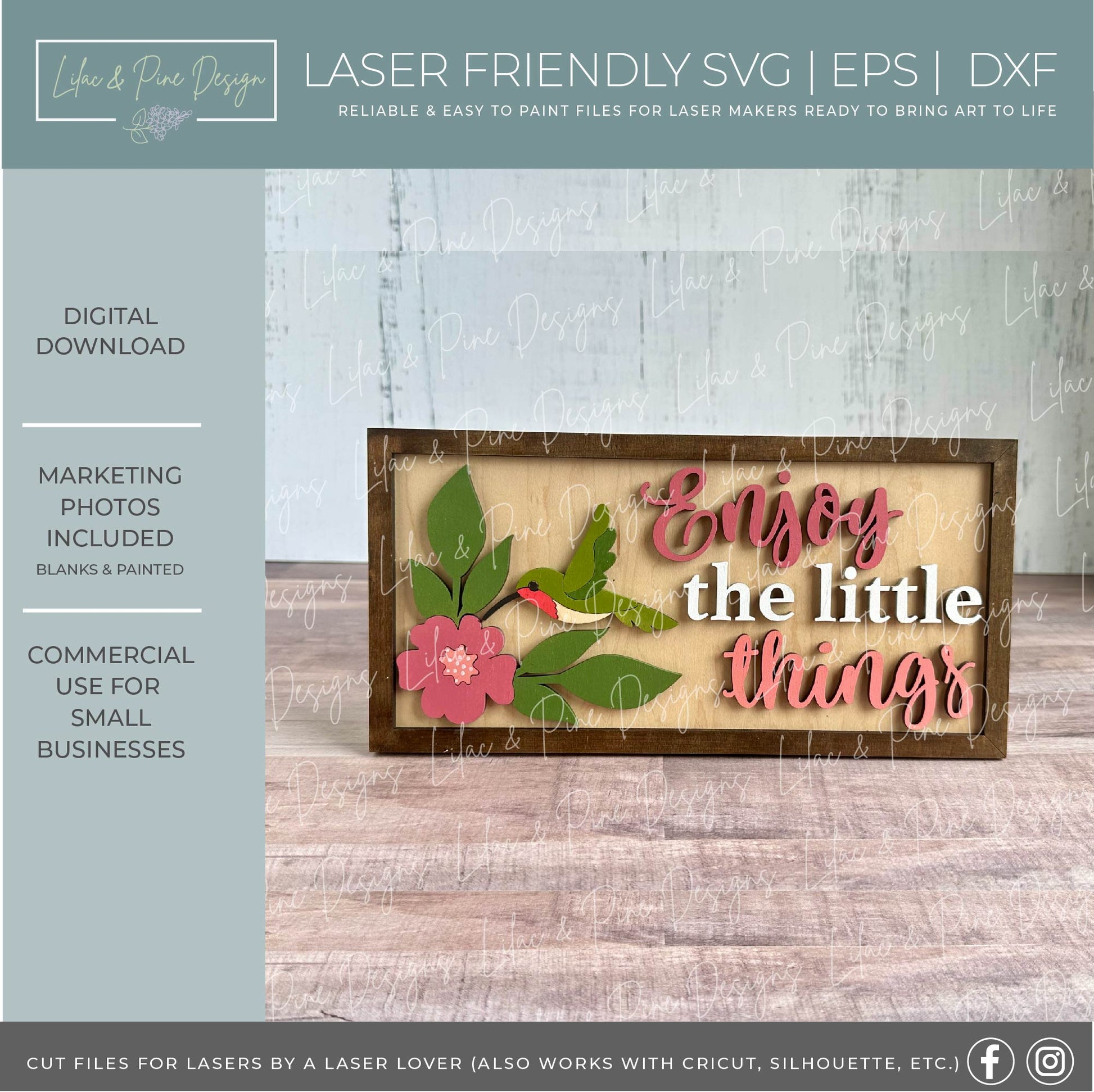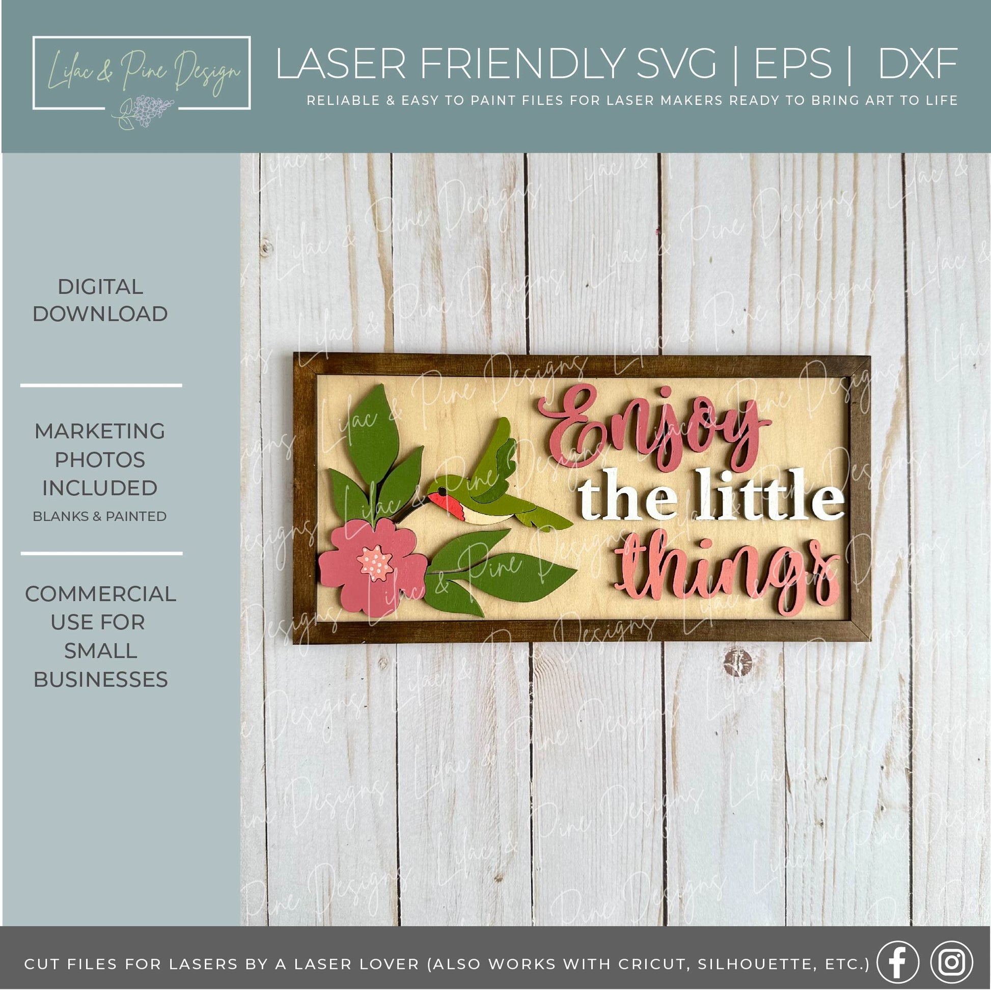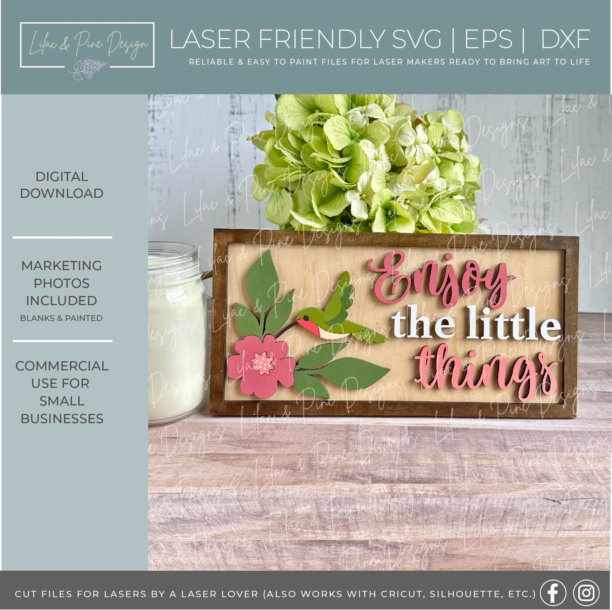 Enjoy the Little things SVG - hummingbird sign - laser cut file - Glowforge SVG