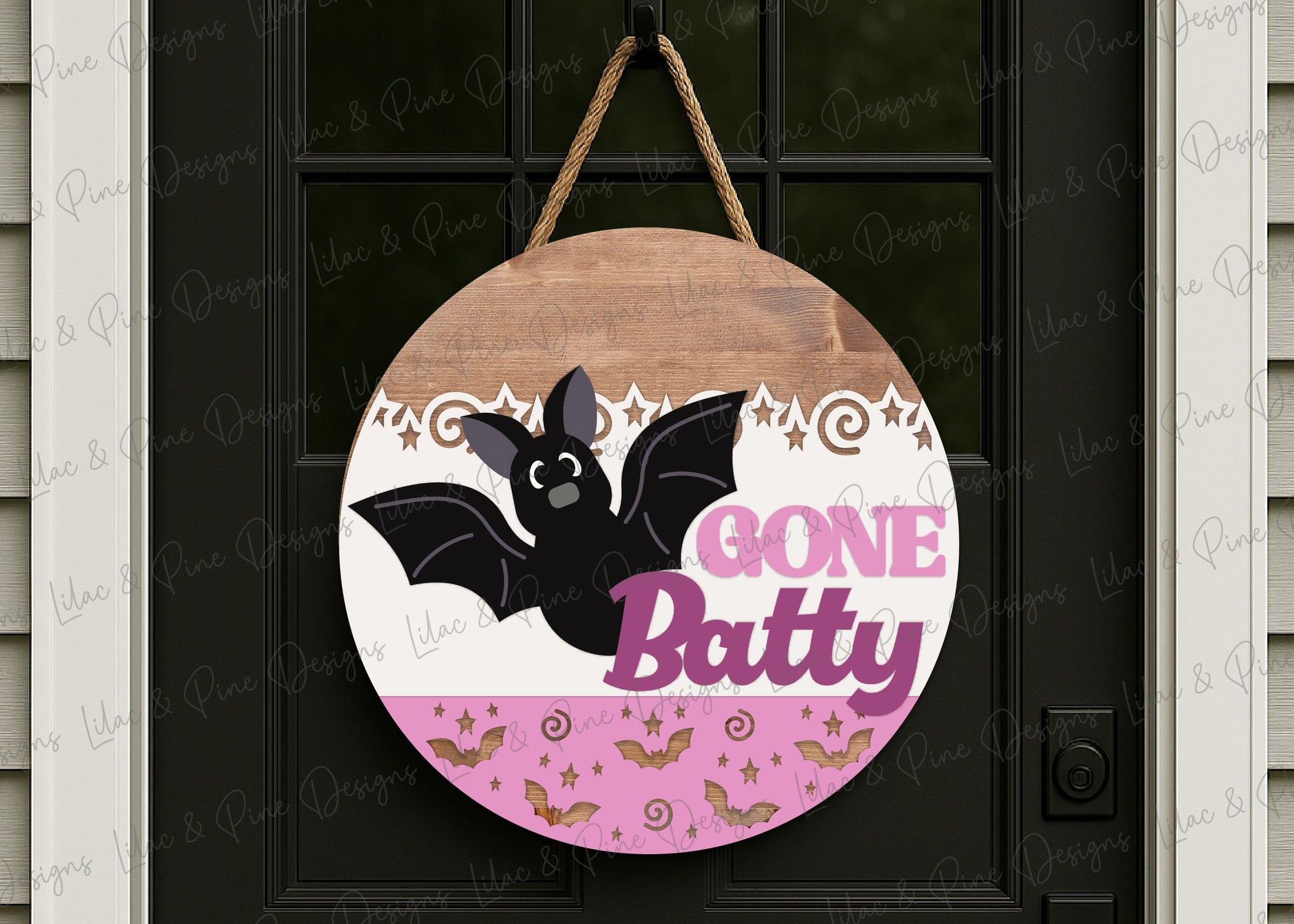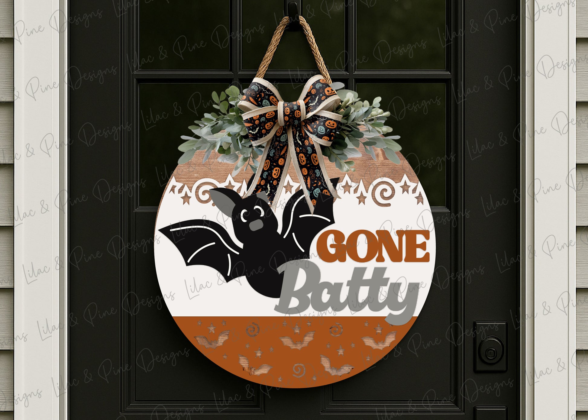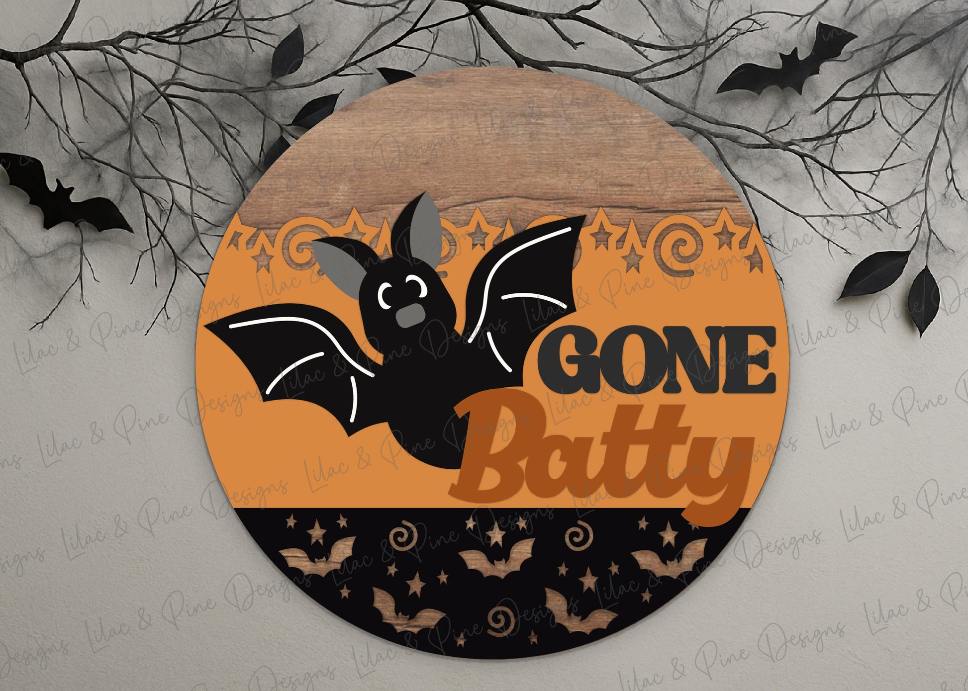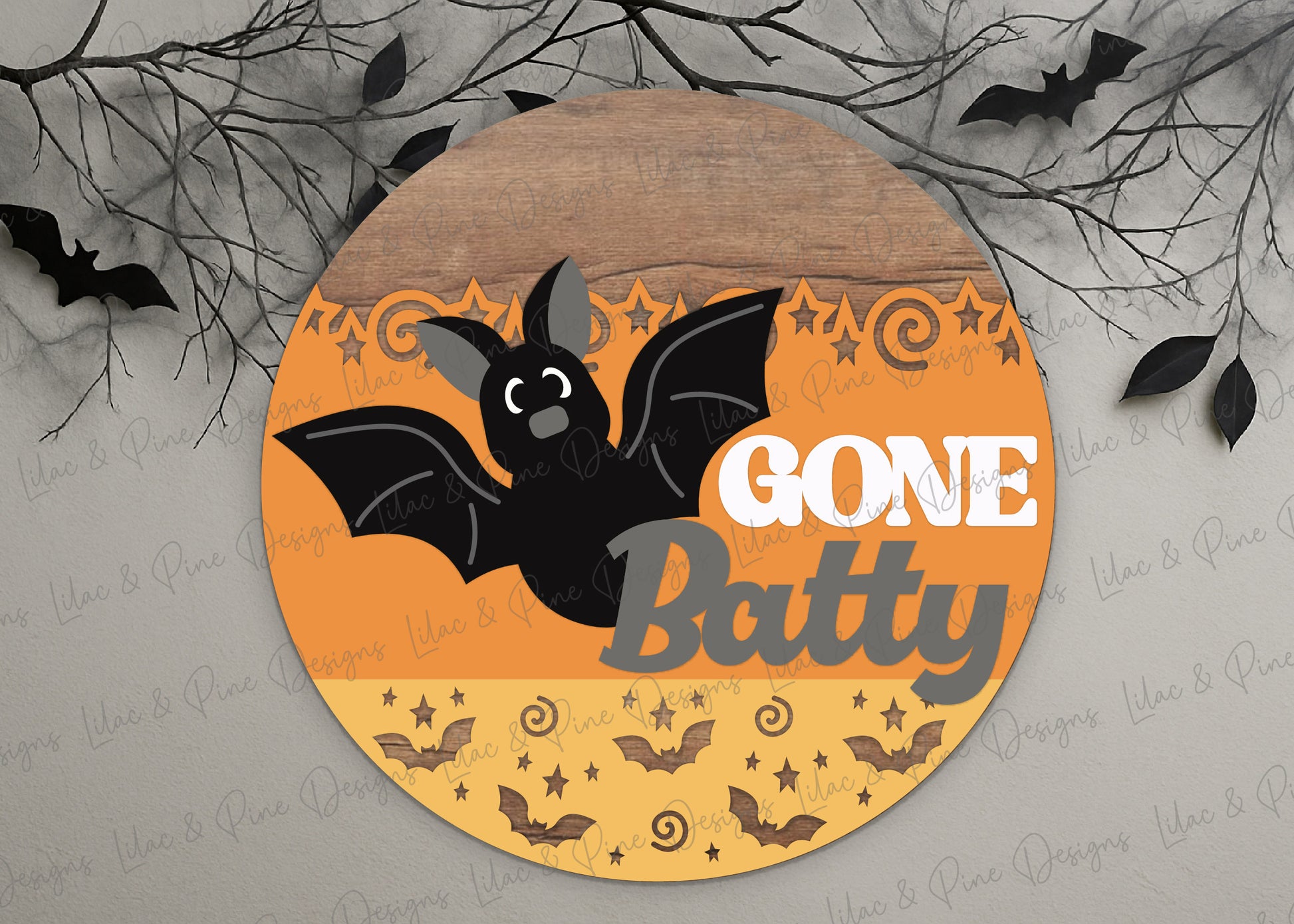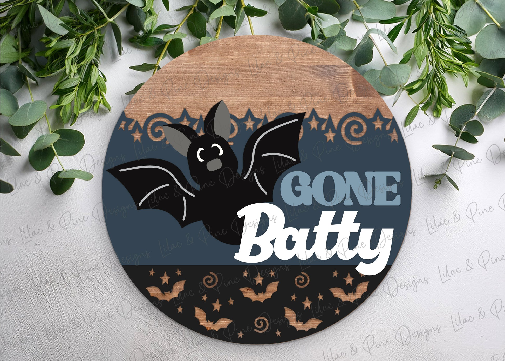 Gone Batty Round Welcome Sign SVG | Cute Halloween Bat Door Hanger Laser Cut File | Layered design for porch & wall decor | laser and Cricut compatible