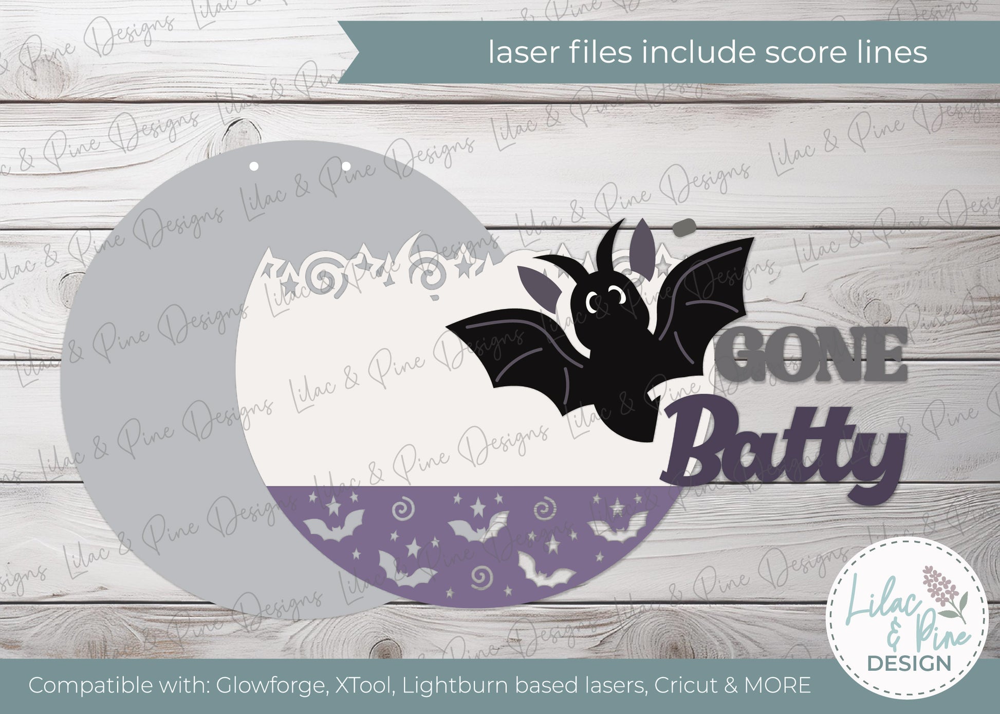 Bring some spooky charm to your Halloween décor this season with this Gone Batty round sign SVG! Featuring a layered bat design with whimsical stars, swirls, and bold lettering, this laser-ready file is perfect for makers creating door hangers, wall signs, or porch décor. It would be fabulous at a sign party, workshop or for your fall festival booth.