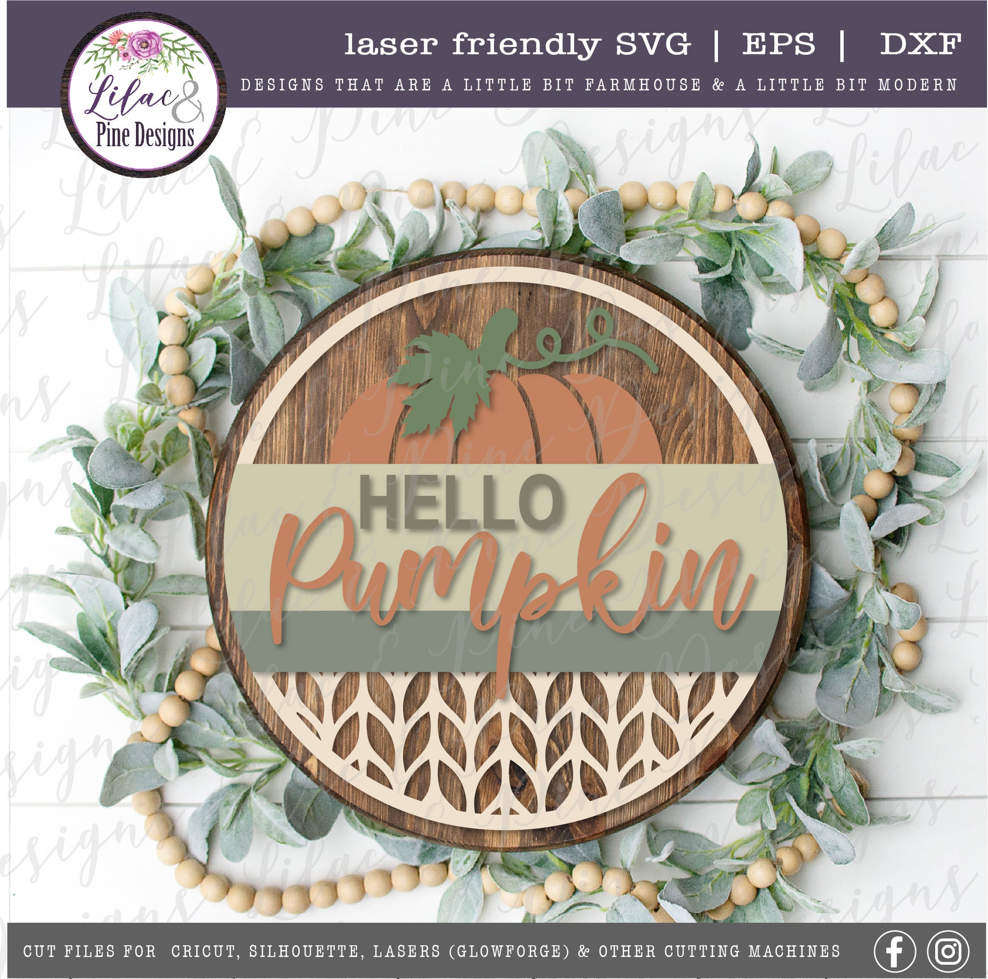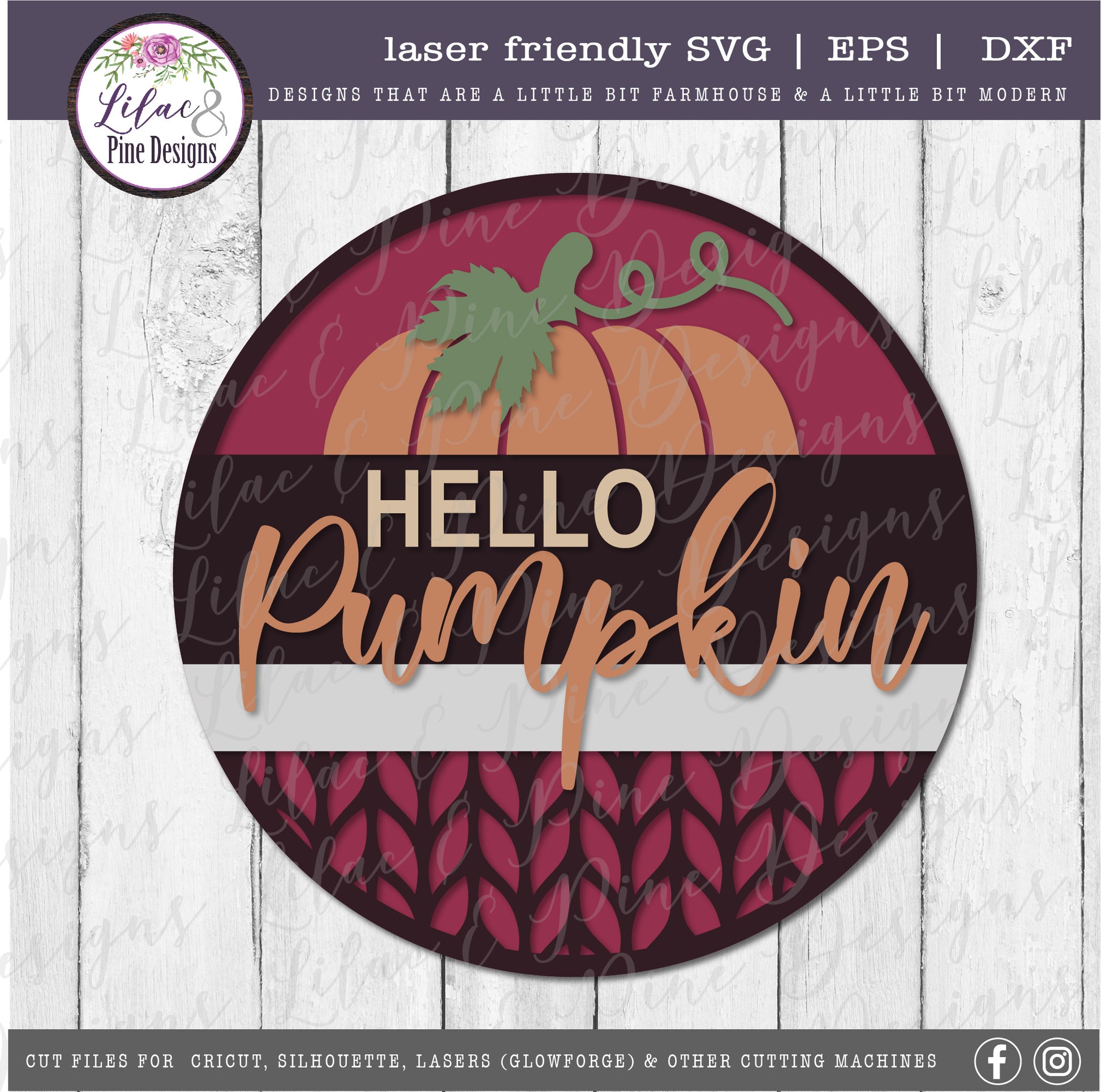 Hello Pumpkin Sweater pattern round sign SVG, fall porch decor SVG, laser cut file, Glowforge SVG