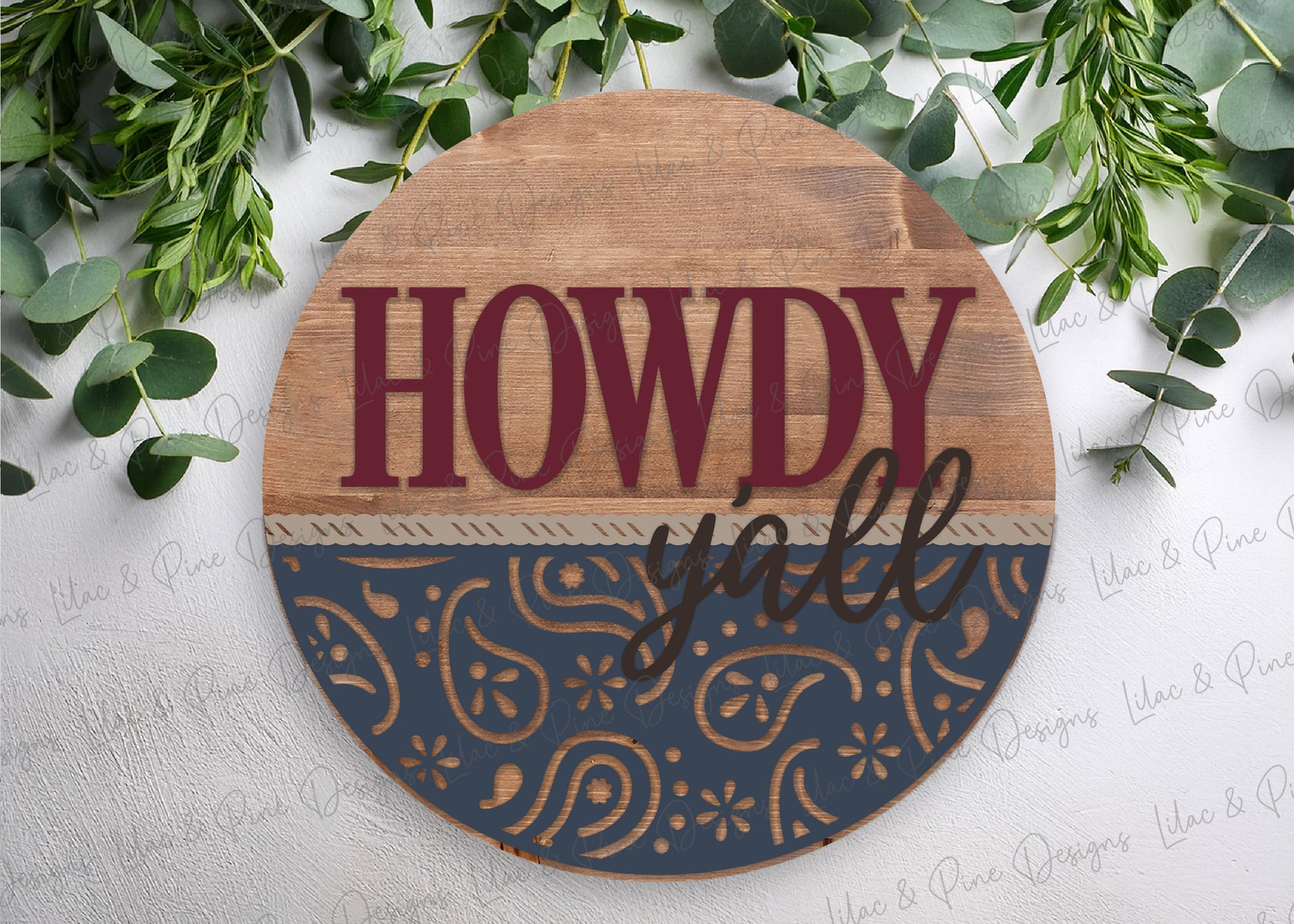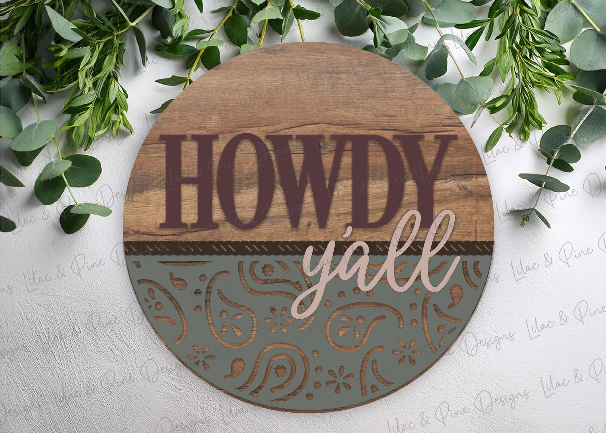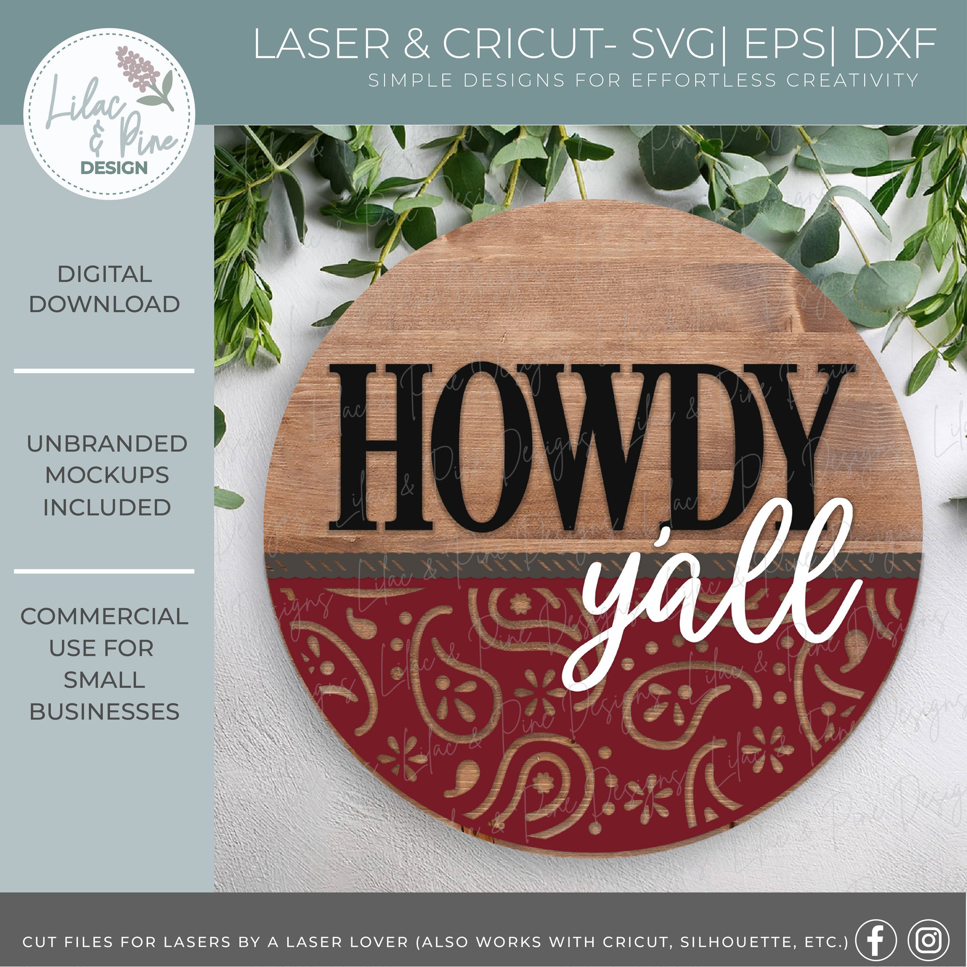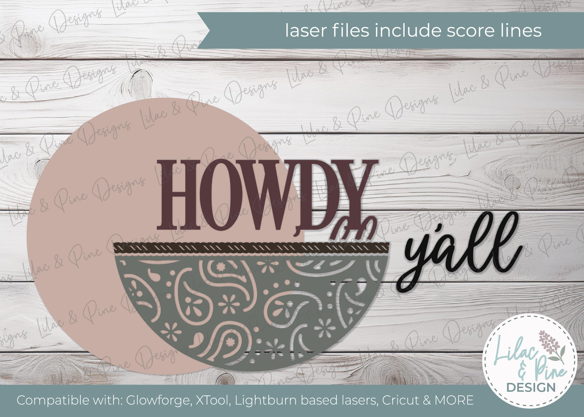 howdy y'all sign SVG, Western door hanger, Handkerchief pattern SVG, Cowboy Welcome sign SVG, porch sign svg, Glowforge Svg, laser cut file