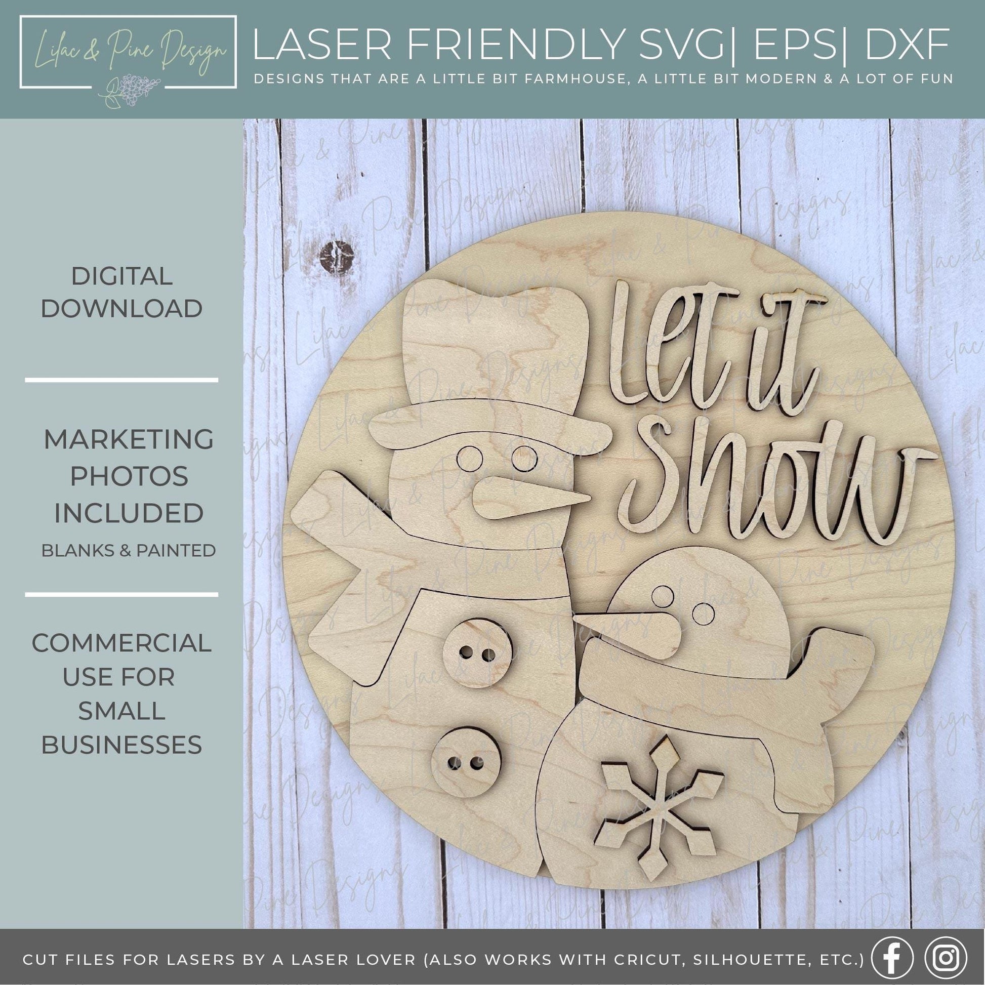 let it snow SVG, winter door hanger SVG, snowman welcome sign SVG, winter porch decor, snow friends sign, Glowforge Svg, laser cut file