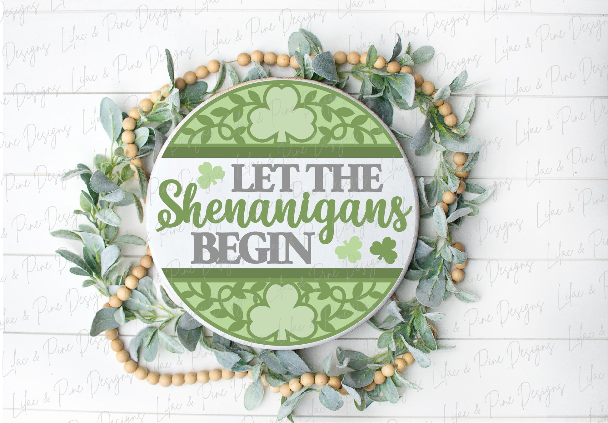 Your purchase of the Let the Shenanigans Begin round sign SVG: