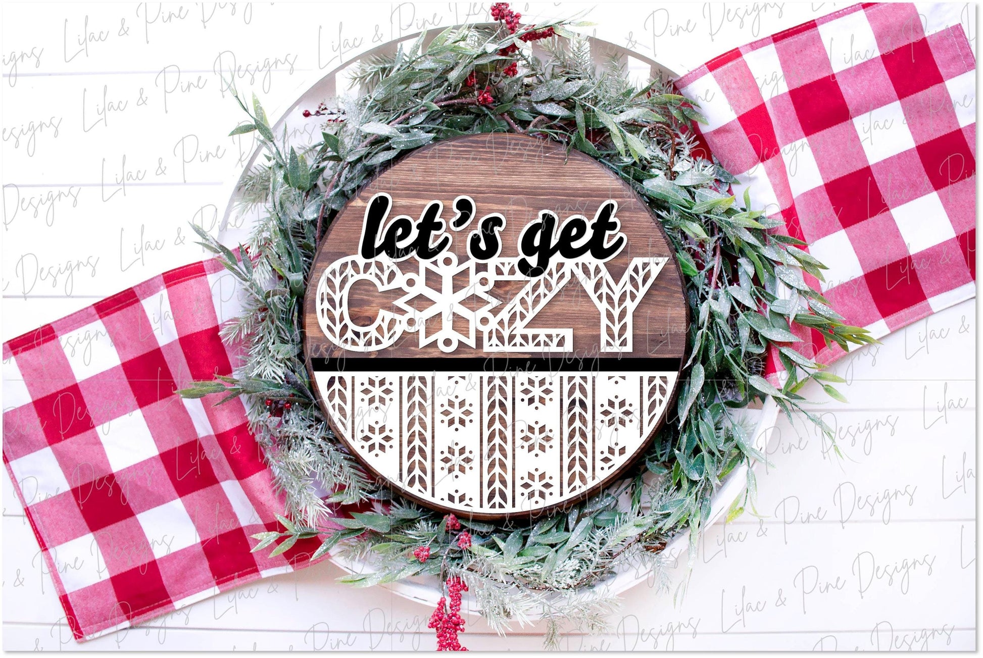 Go seamlessly from Christmas to winter with this Let's Get Cozy sweater meets faire isle pattern sign.