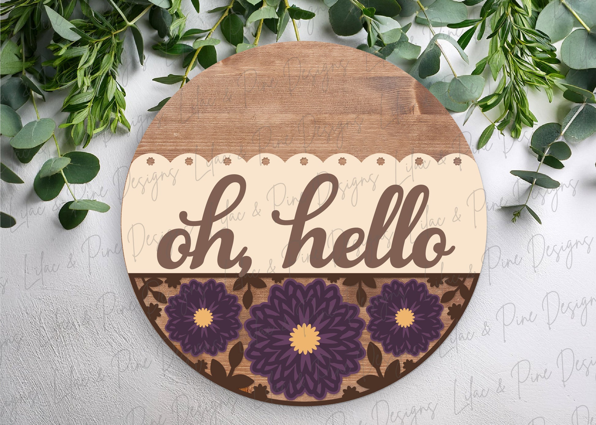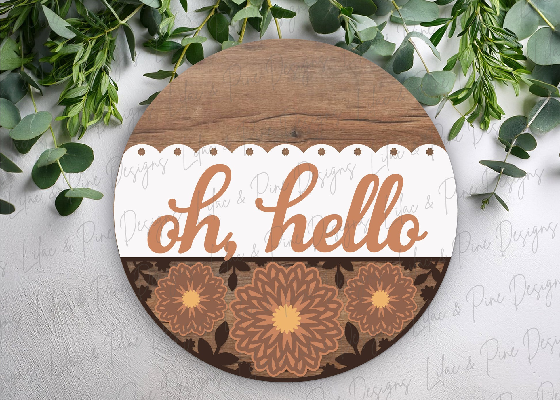Oh Hello Mum Round Door Hanger SVG -