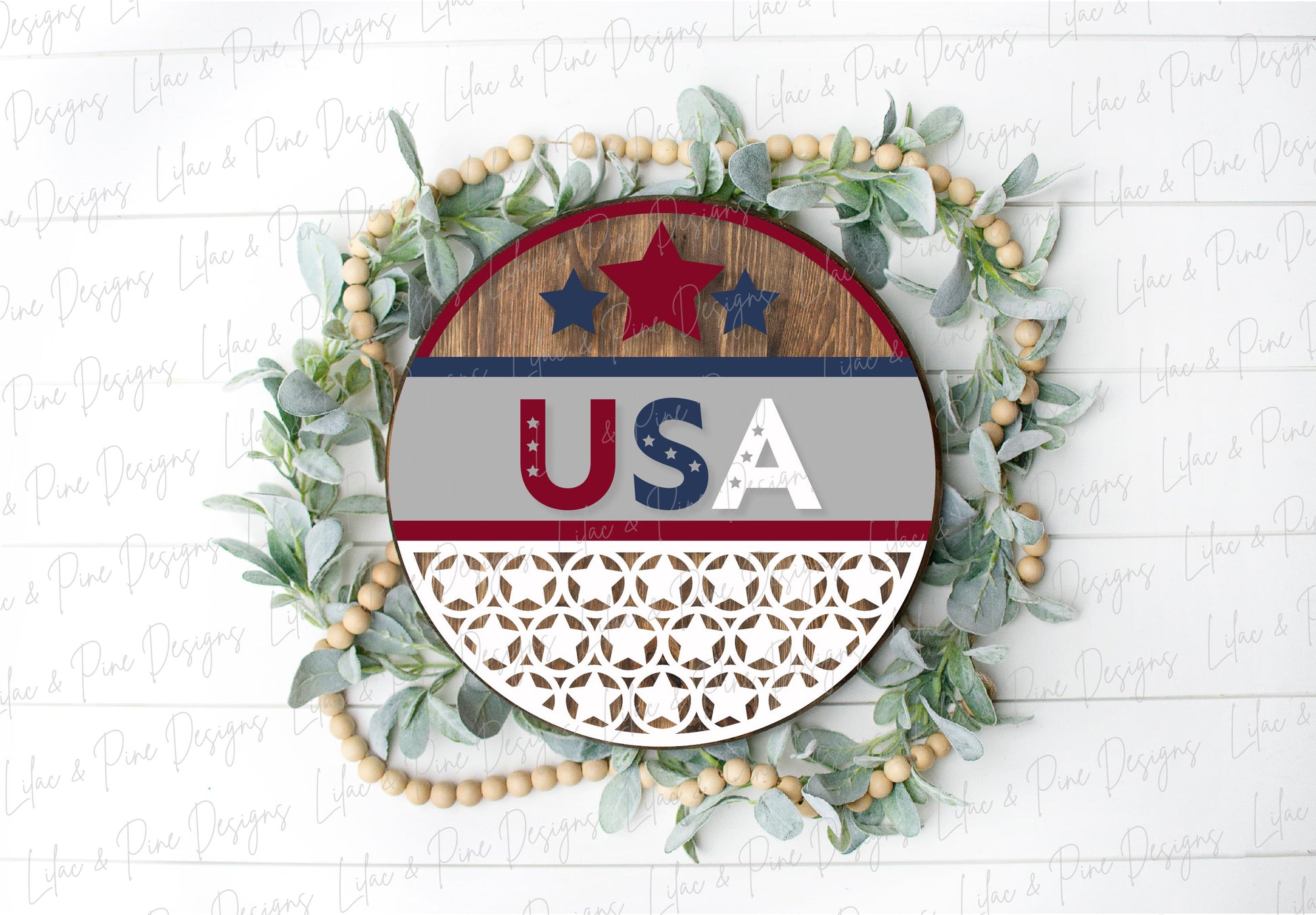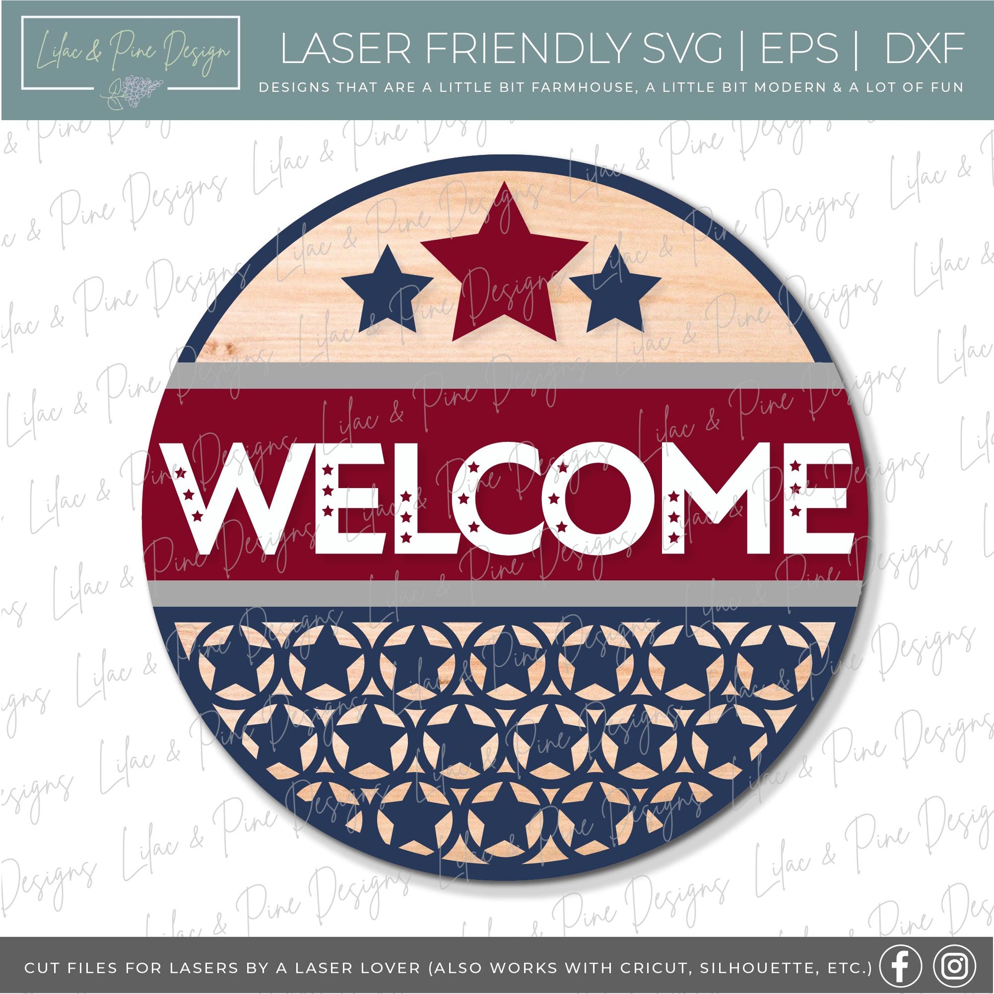 Patriotic Welcome round sign, July 4th door decor SVG, USA SVG, Olympics decor, Independence Day porch sign, Glowforge Svg, laser cut file