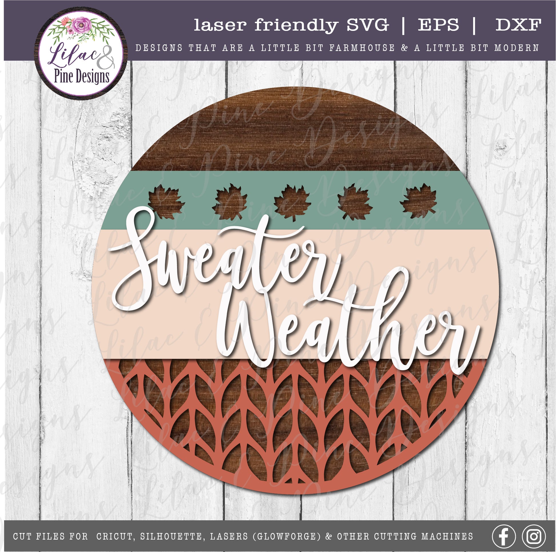 Sweater Weather round sign SVG, fall porch decor SVG, laser cut file, Glowforge SVG