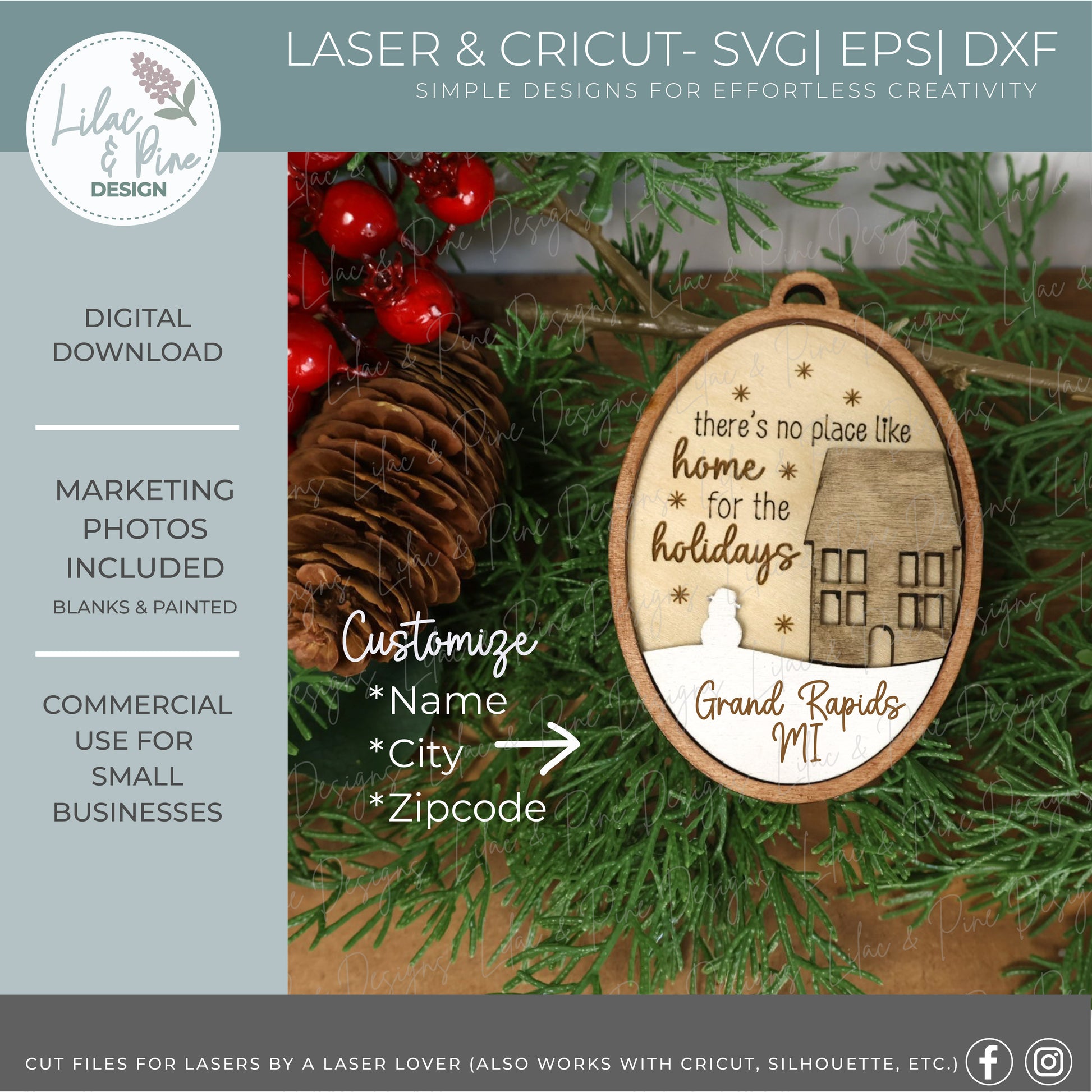 Designed in a classical oval shape for a modern touch and optimized for fast cutting and layering, this ornament adds a cozy hometown feel to any tree.