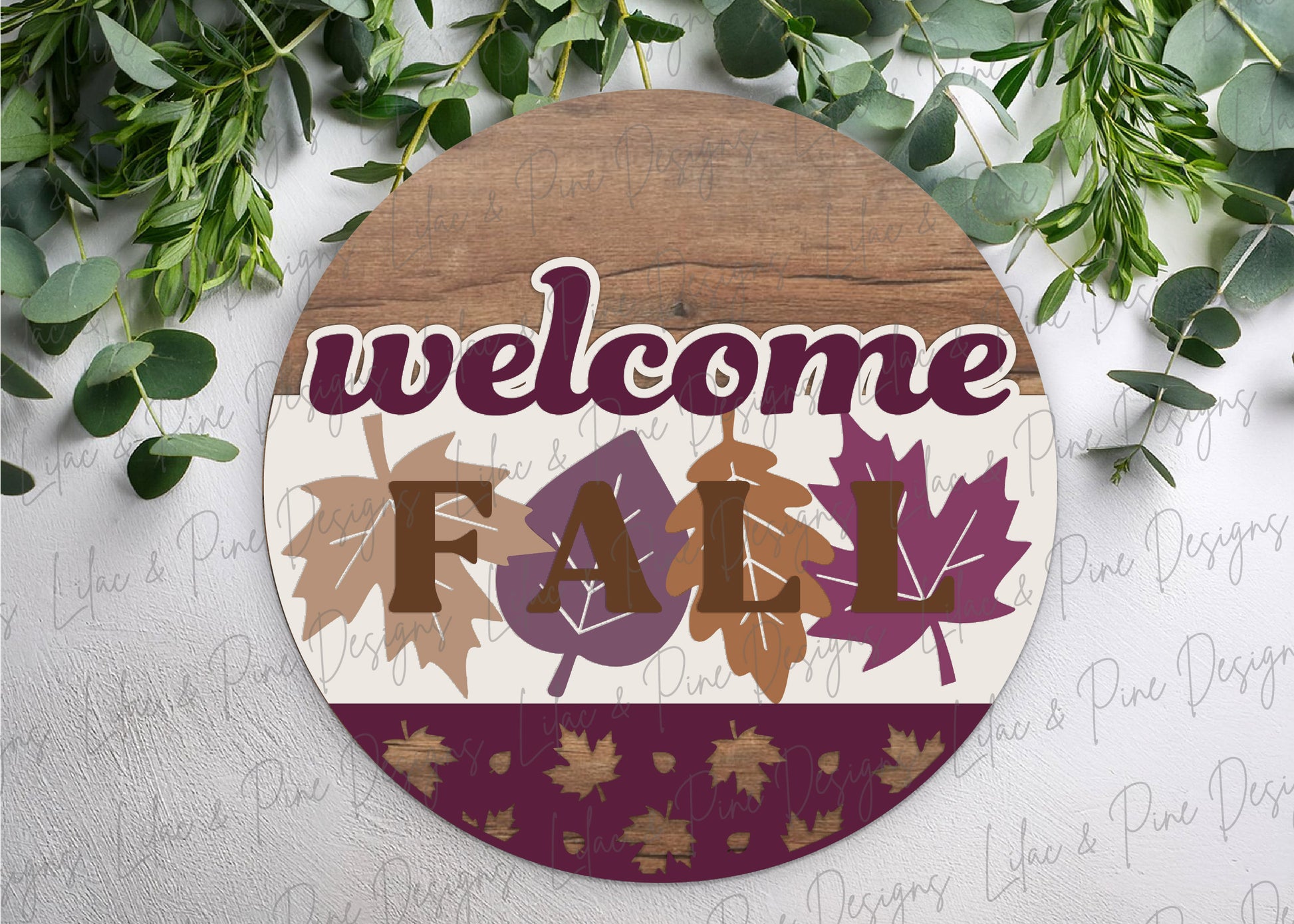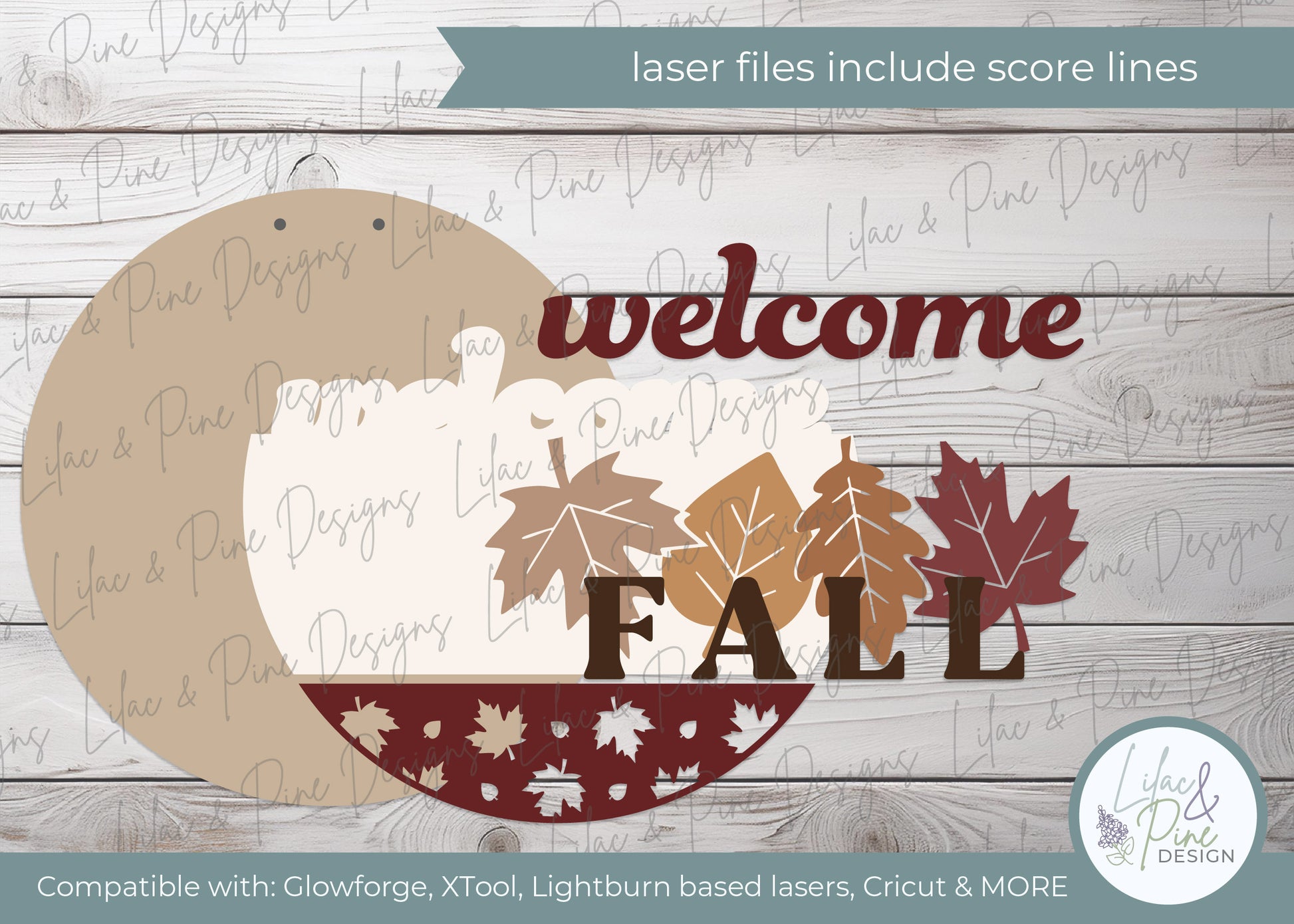 Welcome Fall door hanger SVG - layered fall eaf sign SVG - autumn porch decor - digital download for Cricut - fall laser cut file